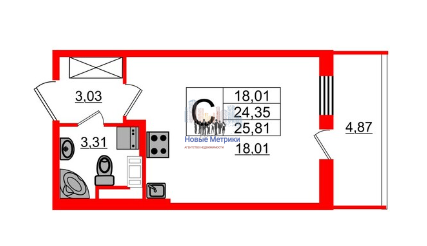 Общая площадь 24.3 м2