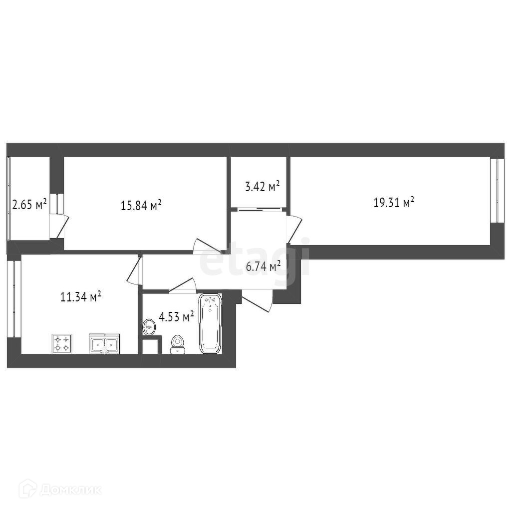 Общая площадь 61.8 м2