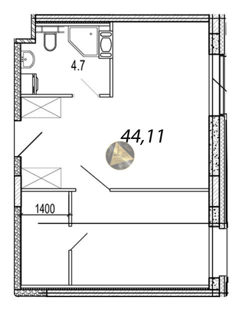 - Общая площадь квартиры 44,11 м2