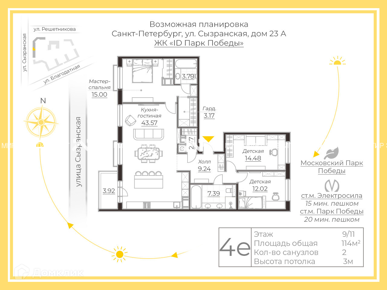 Дом находится в одном из самых престижных и комфортных для проживания районов Санкт-Петербурга. Лучшие образовательные учреждения. Малоэтажная застройка. Легендарный Парк Победы в шаговой доступности, до станции метро Электросила 15 пешком. Удобный выезд на ЗСД. Исторический центр в 10 минутах на автомобиле. Скоро будет сдана СКА Арена, что безусловно приведет к повышению цен в этом жилом комплексе. Это действительно ликвидная недвижимость.
