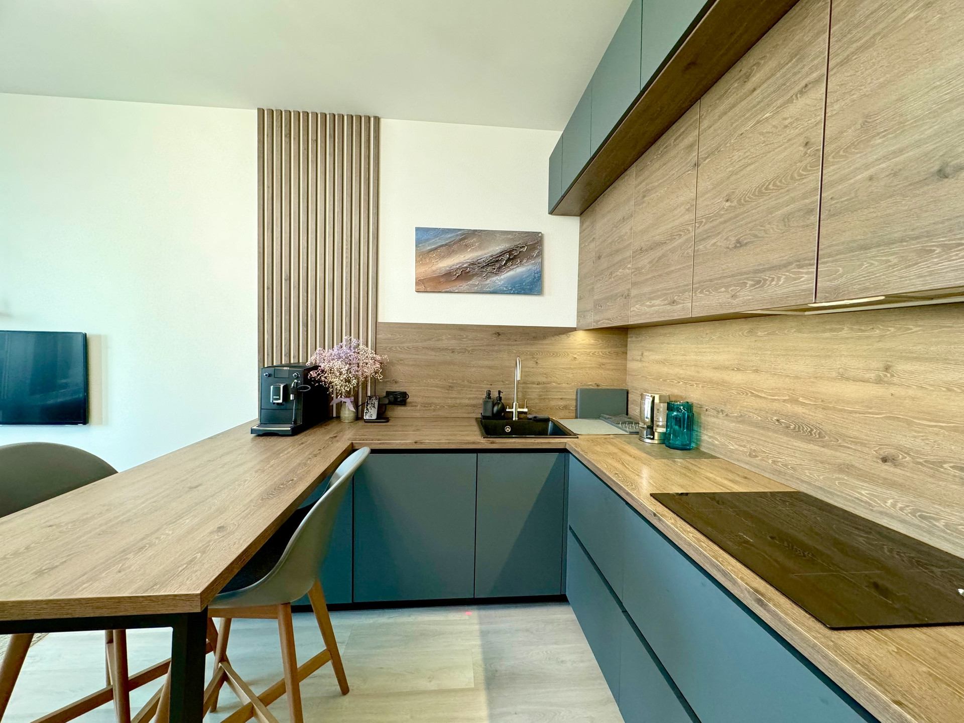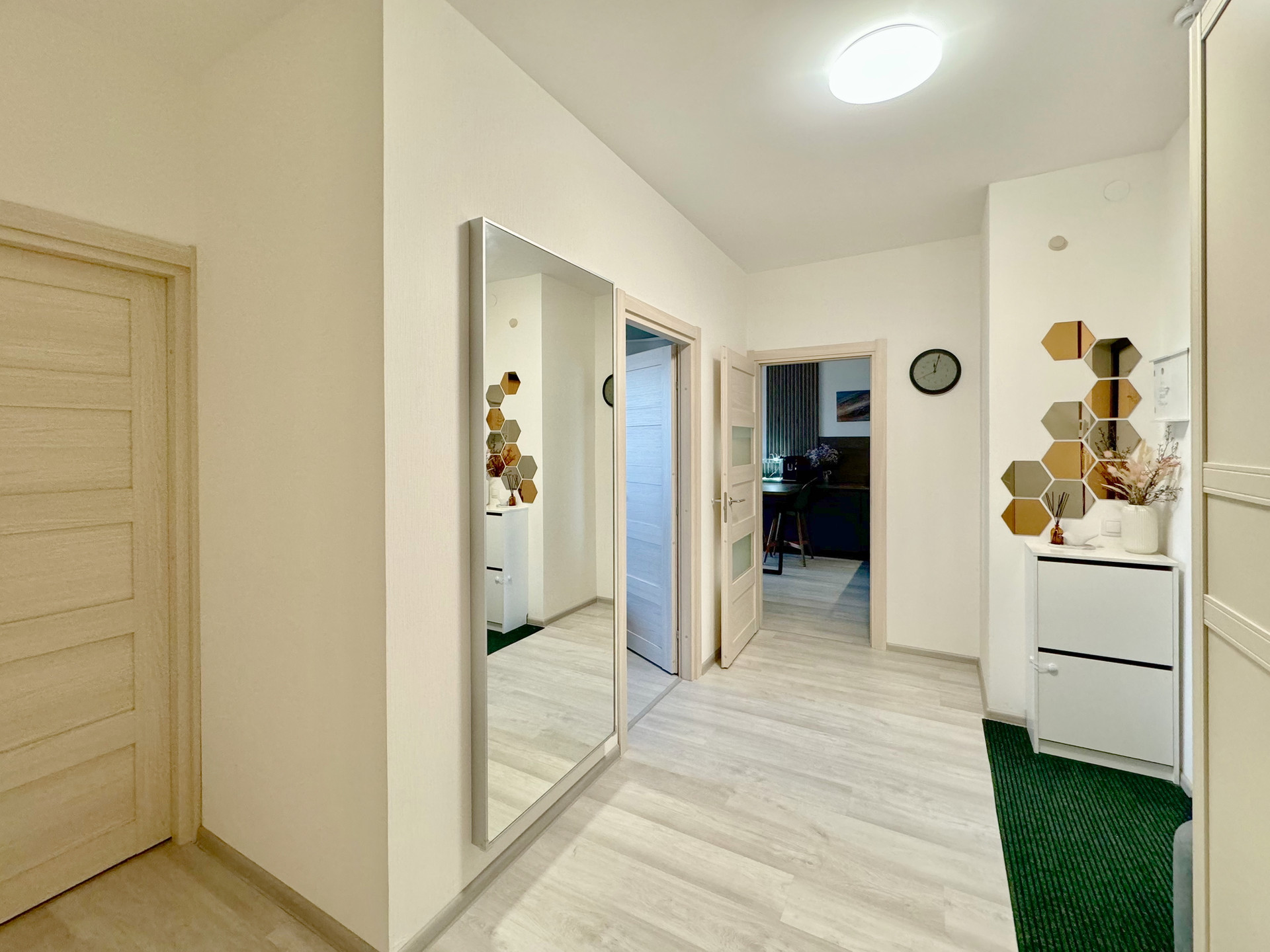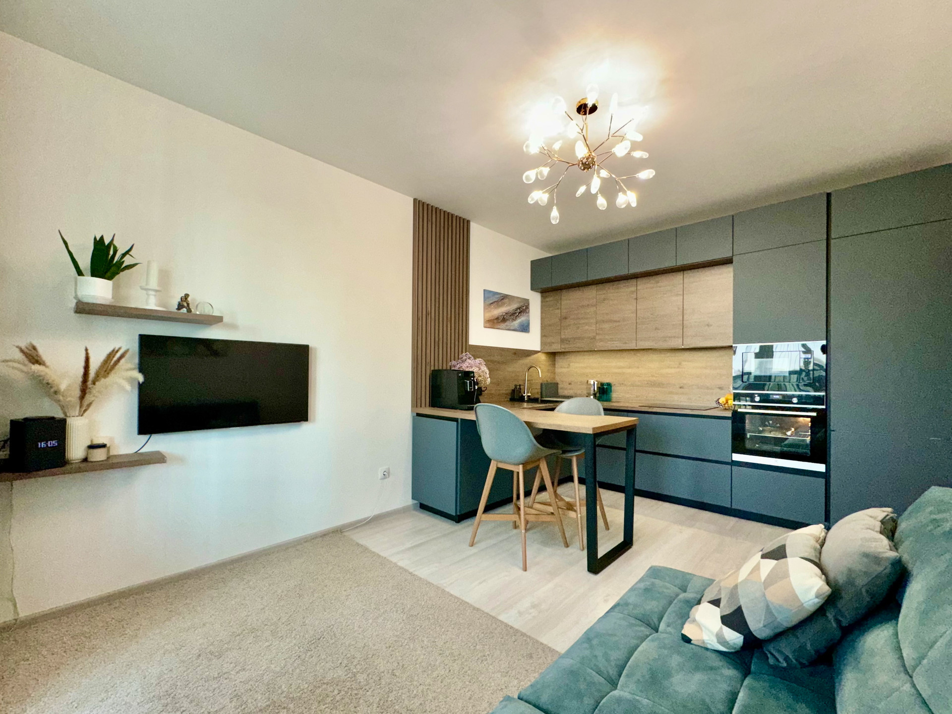 · Продуманная планировка: Просторная кухня-гостиная, которая гармонично переходит в зону столовой, а также уютная спальня с видом на реку. Большие окна наполняют квартиру естественным светом в течение всего дня.