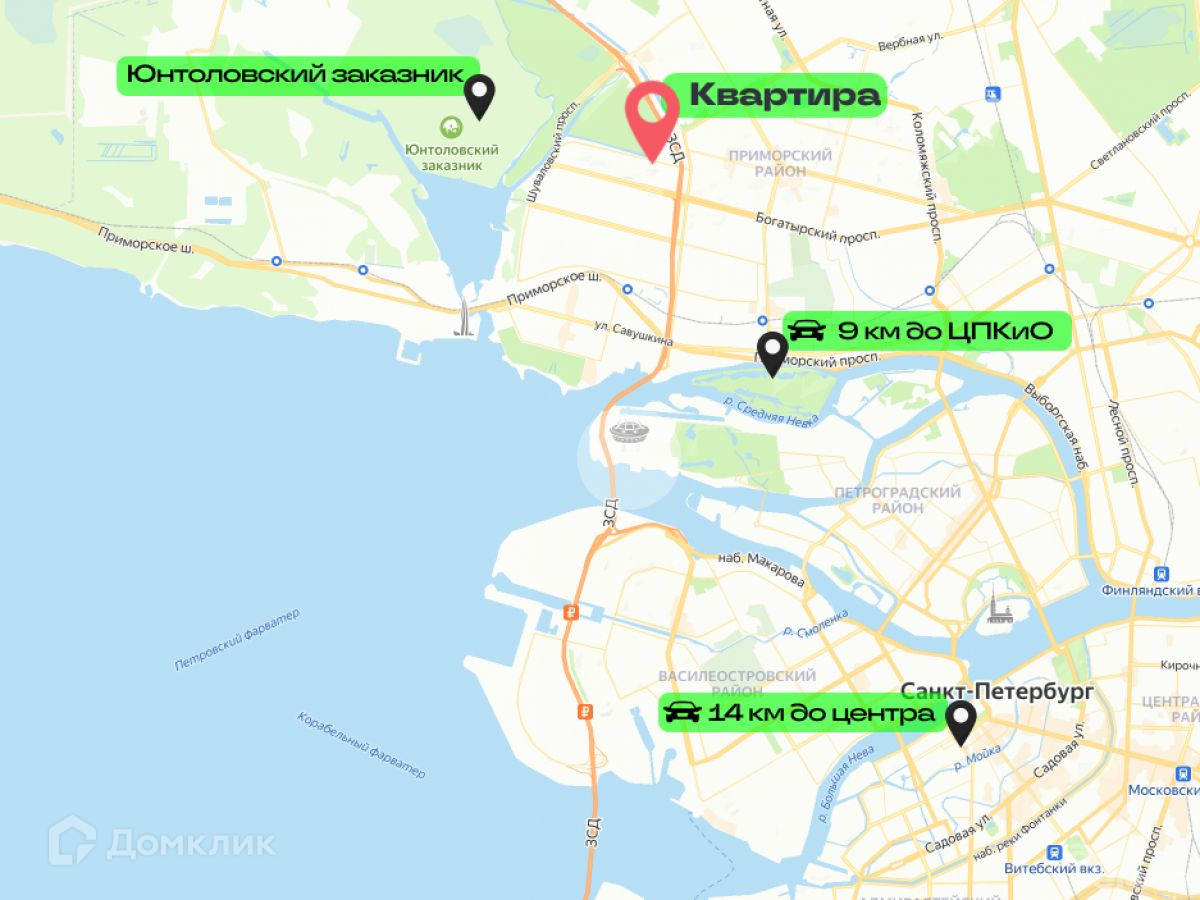 Для автомобилистов всего в 4 минутах езды находится съезд на ЗСД.