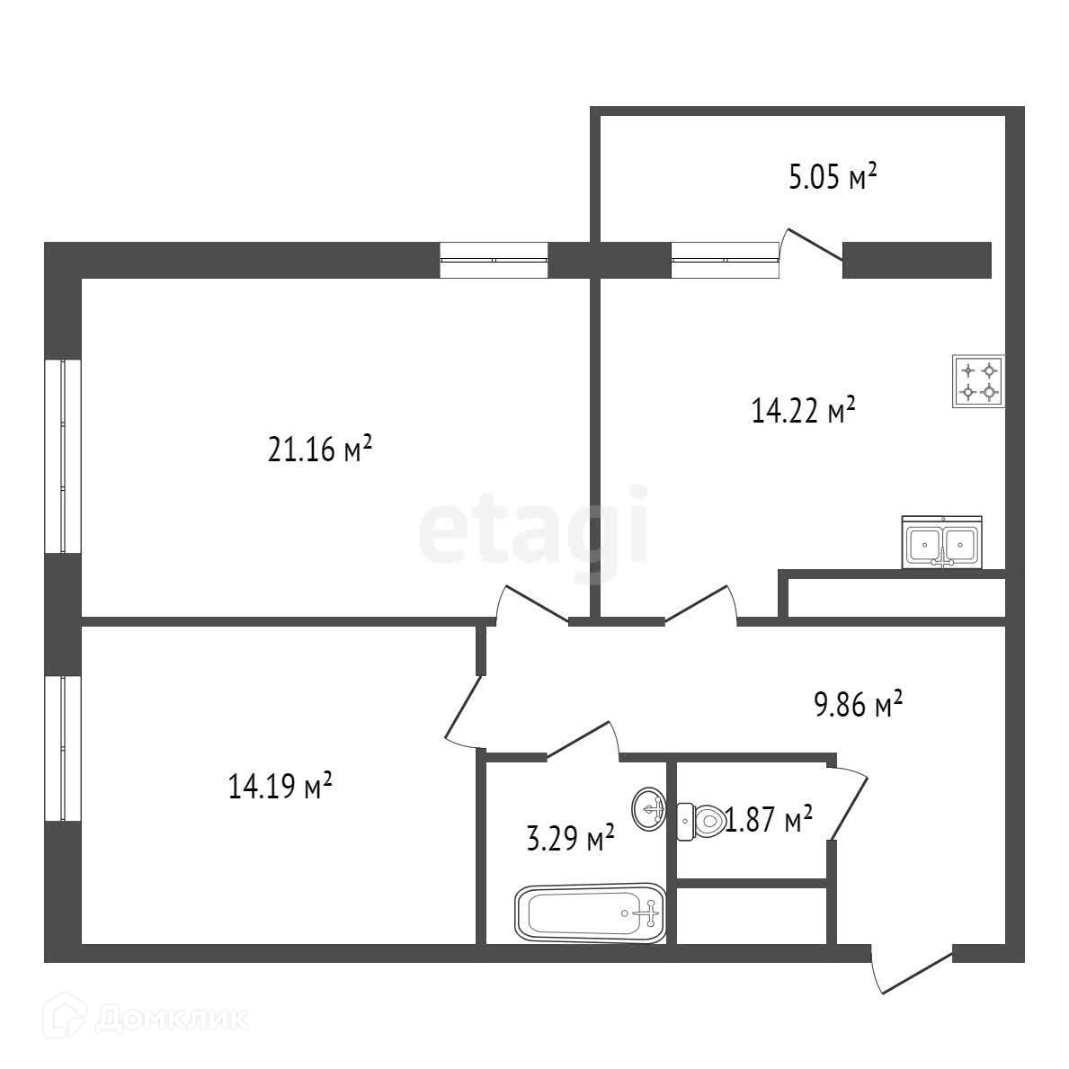 Площадь кухни 14.22 м2