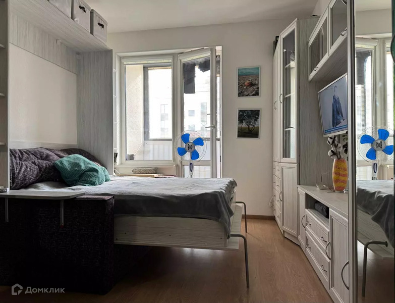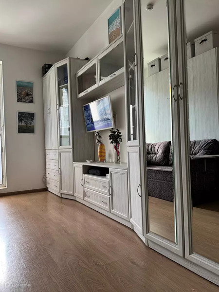 Студия укомплектована всем необходимым для комфортного проживания. Откидная кровать, шкафы, кухня, техника остается в подарок новым собственникам.