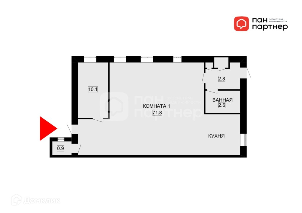 Квартира освобождена от предыдущих перегородок и представляет собой свободную планировку.