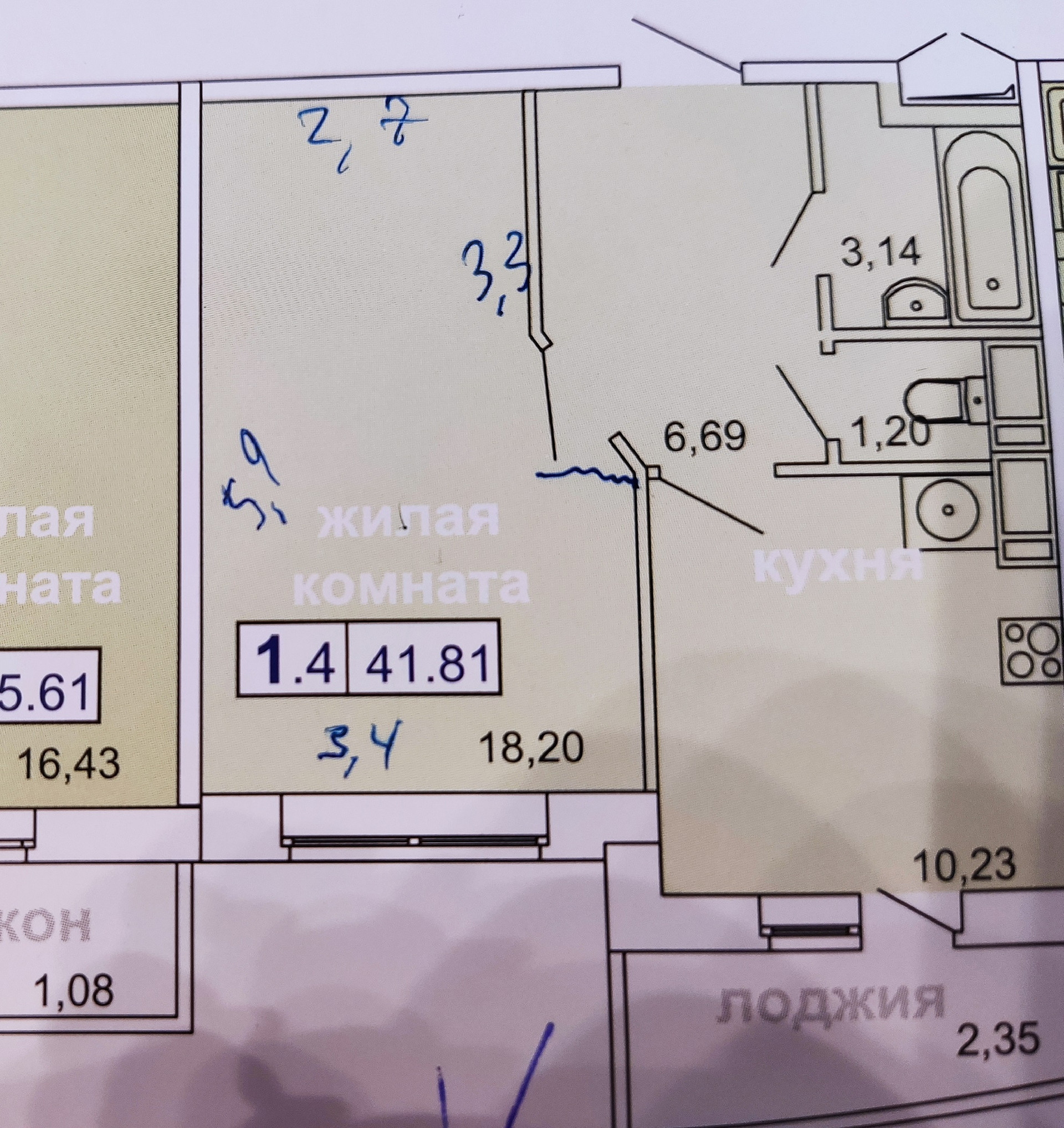 Общая площадь 41.8 м2