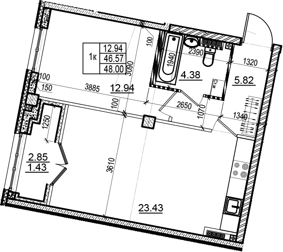 Площадь кухни 23.43 м2