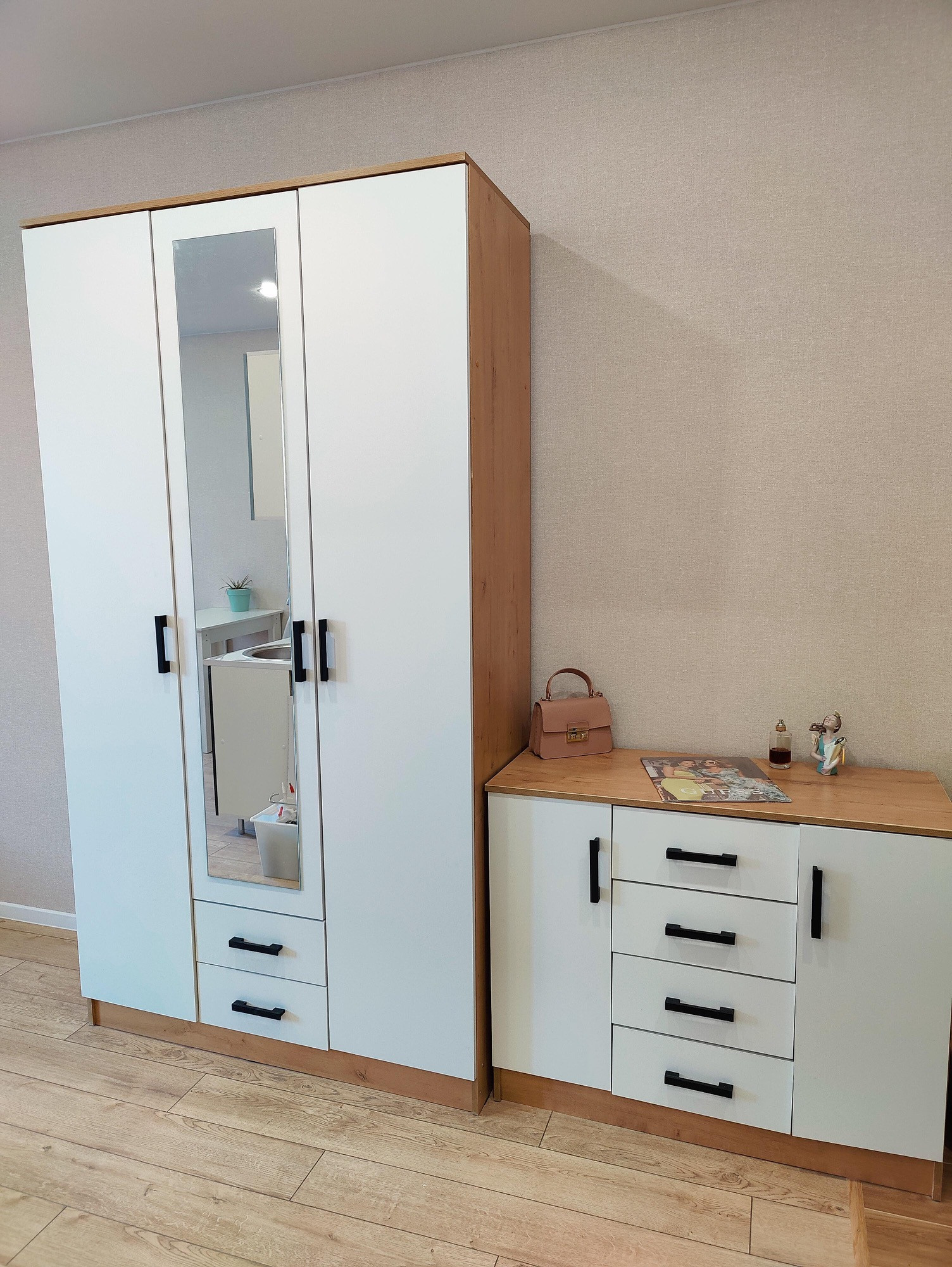 Вся квартира выполнена в одном стиле, цвета и фактуры прослеживаются в каждом помещении.