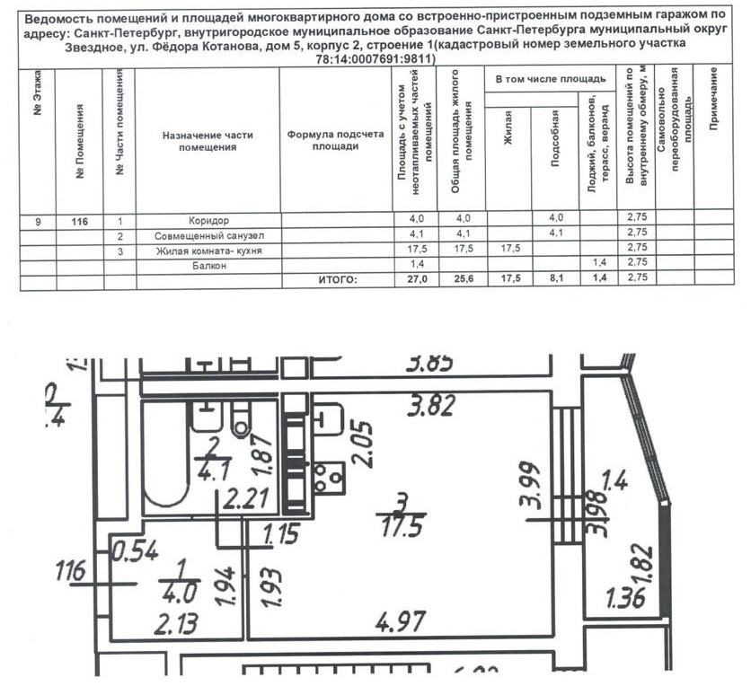 Общая площадь 25.6 м2