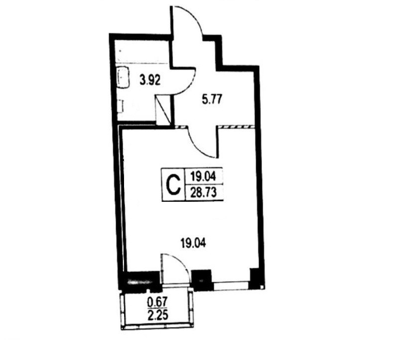 Жилая площадь 19.04 м2