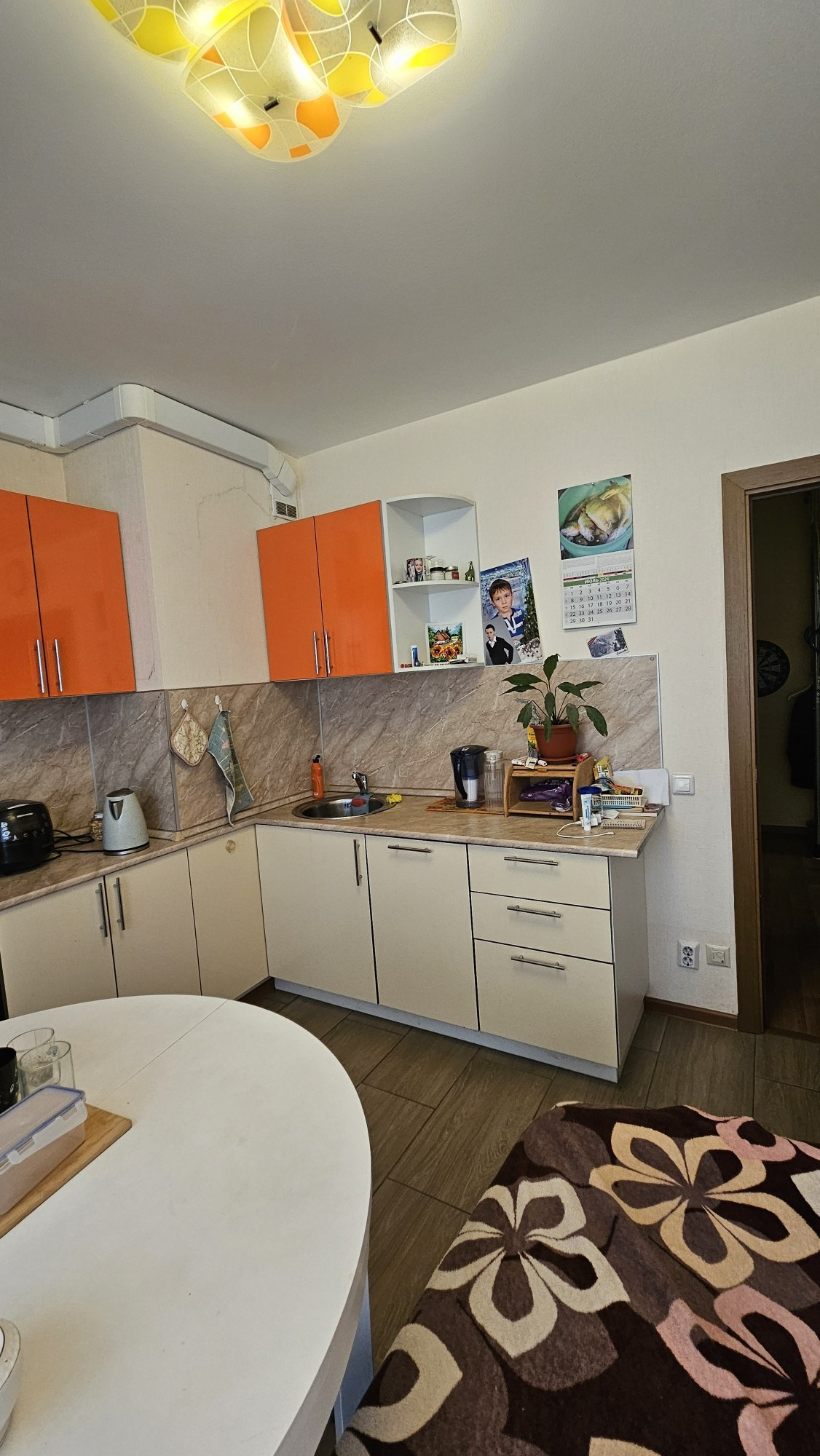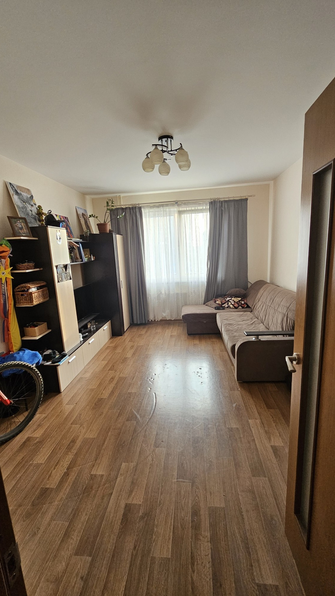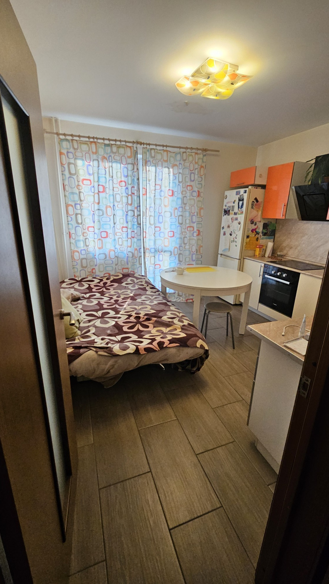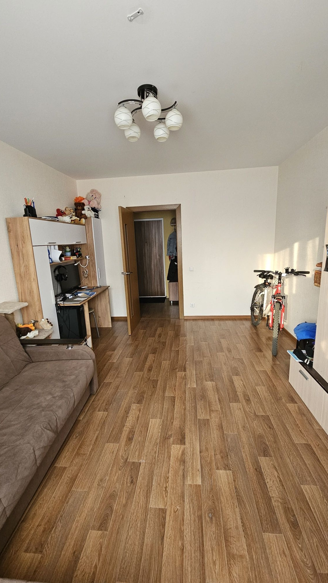 В квартире ремонт от застройщика. Есть все необходимое для проживания: просторная кухня(из техники остается все,кроме холодильника,посудомоечной машины,телевизора), уютная комната и отдельный санузел. В коридоре оборудована гардеробная. Окна выходят во двор, поэтому в квартире всегда тихо и спокойно.