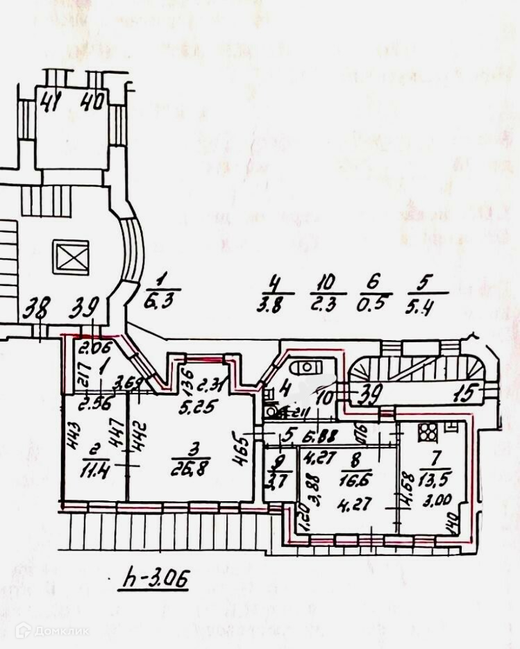 Высота потолков 3.06 м