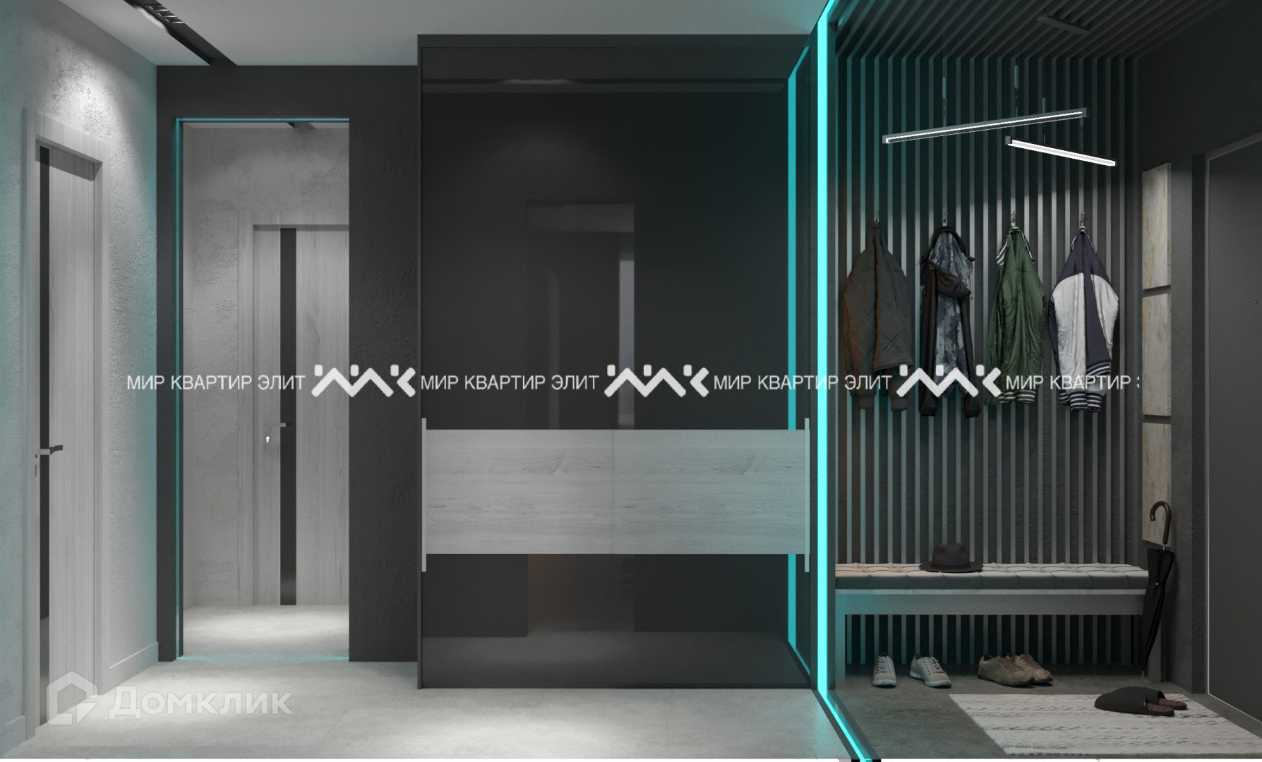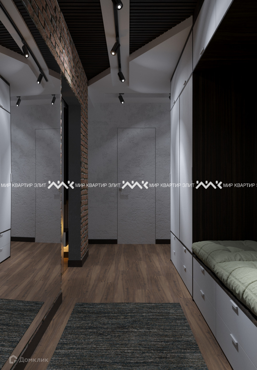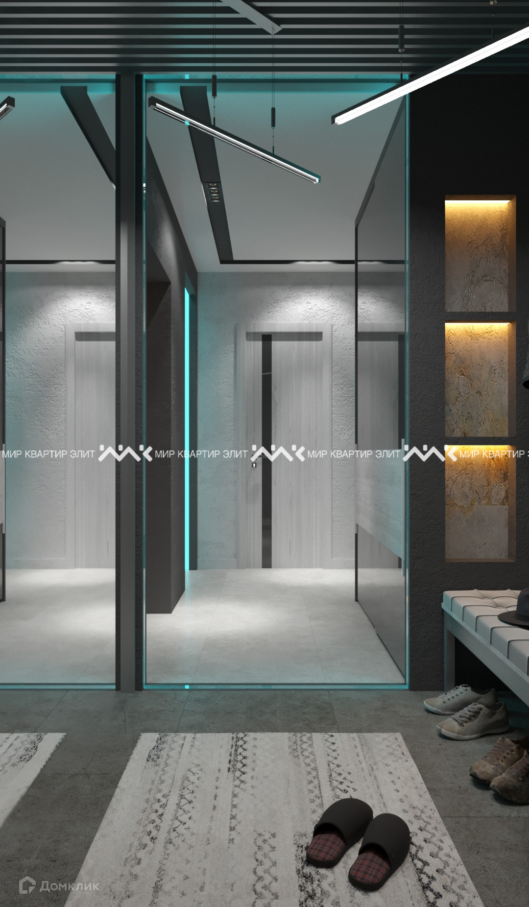 При входе мы попадаем в просторный коридор, который связывает все комнаты. Из него мы плавно погружаемся в просторную гостиную 25м2, которую можно разделить на две зоны, что позволит вместить всех гостей. Далее в противоположных частях квартиры находятся кухня и спальня, которые обладают большими лоджиями шириной более 2 метров. Вместительную гардеробную при желании можно объединить со спальней. Наличие двух сан. узлов является важной деталью в большой квартире.