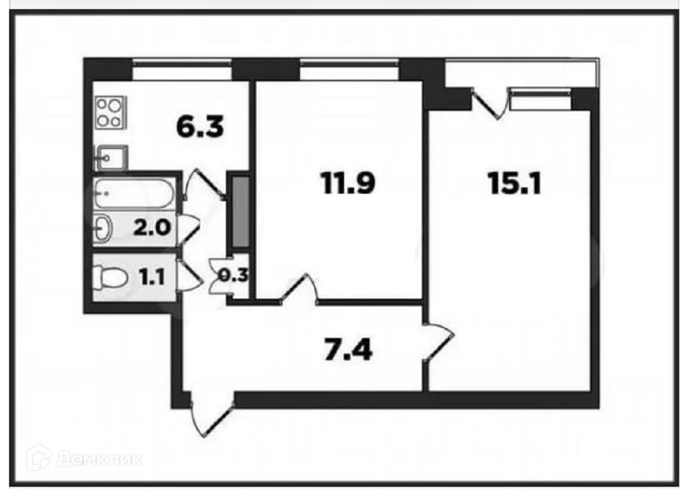 Общая площадь 43.7 м2