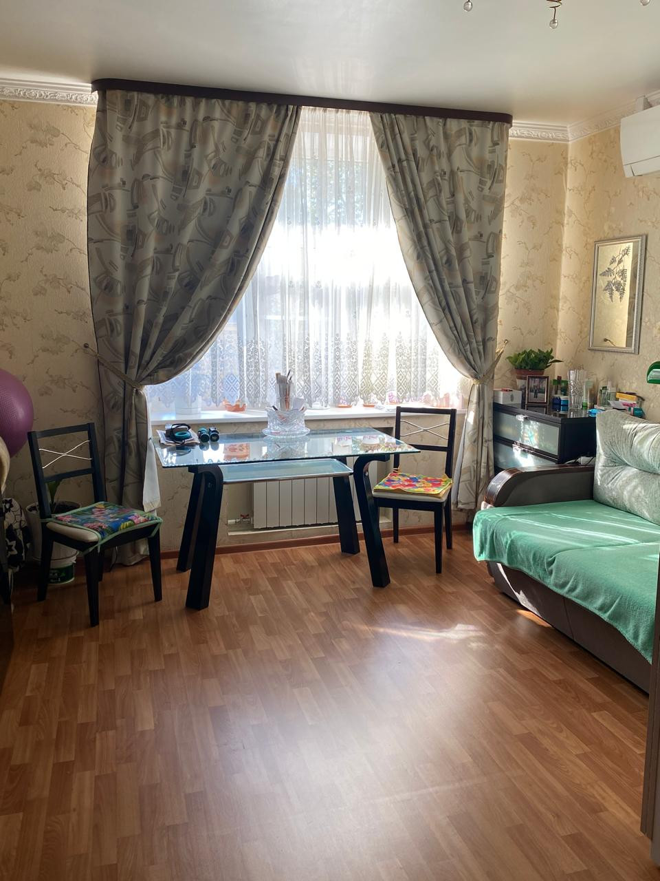 На полу паркет, окна выходят во двор и на улицу.
