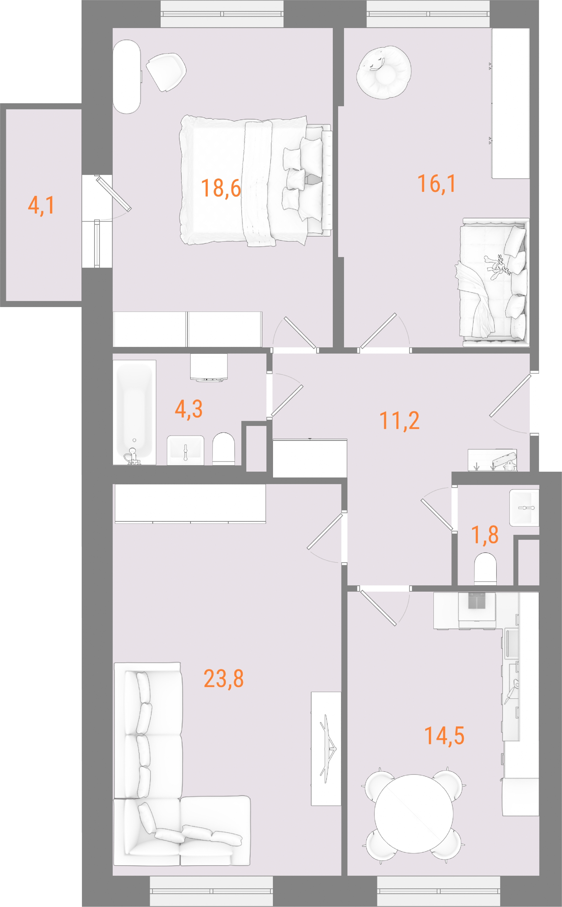 - планировка с окнами на 3 стороны — обеспечивает хорошее естественное освещение в течение дня,