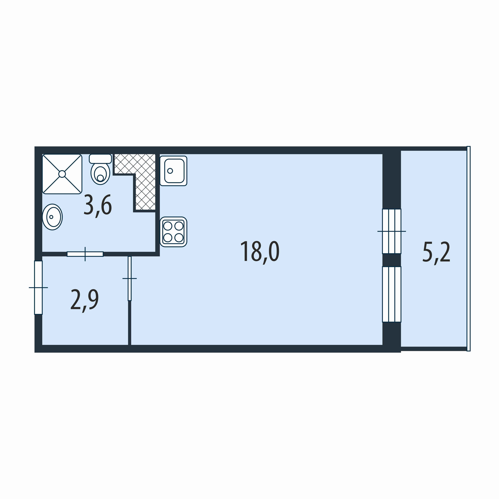 Общая площадь 24.5 м2