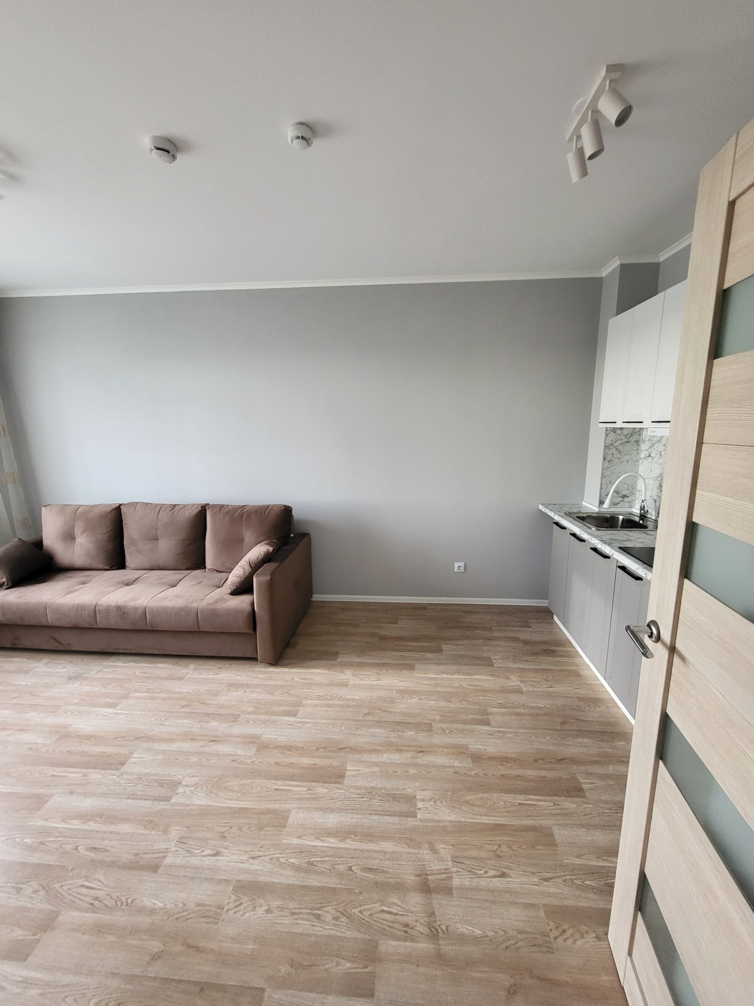 Продаётся уютная однокомнатная квартира/евродвушка (отдельная комната+кухня/гостинная) площадью 32 кв. метра в новом монолитном доме, расположенном по адресу: Санкт-Петербург, Полюстрово, Муринская дорога, 25к1с1.
