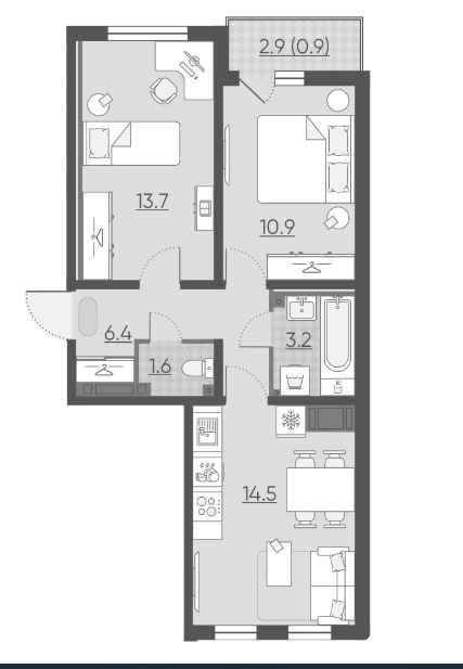 Жилая площадь 50 м2