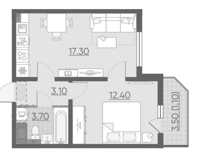 Общая площадь 37.6 м2