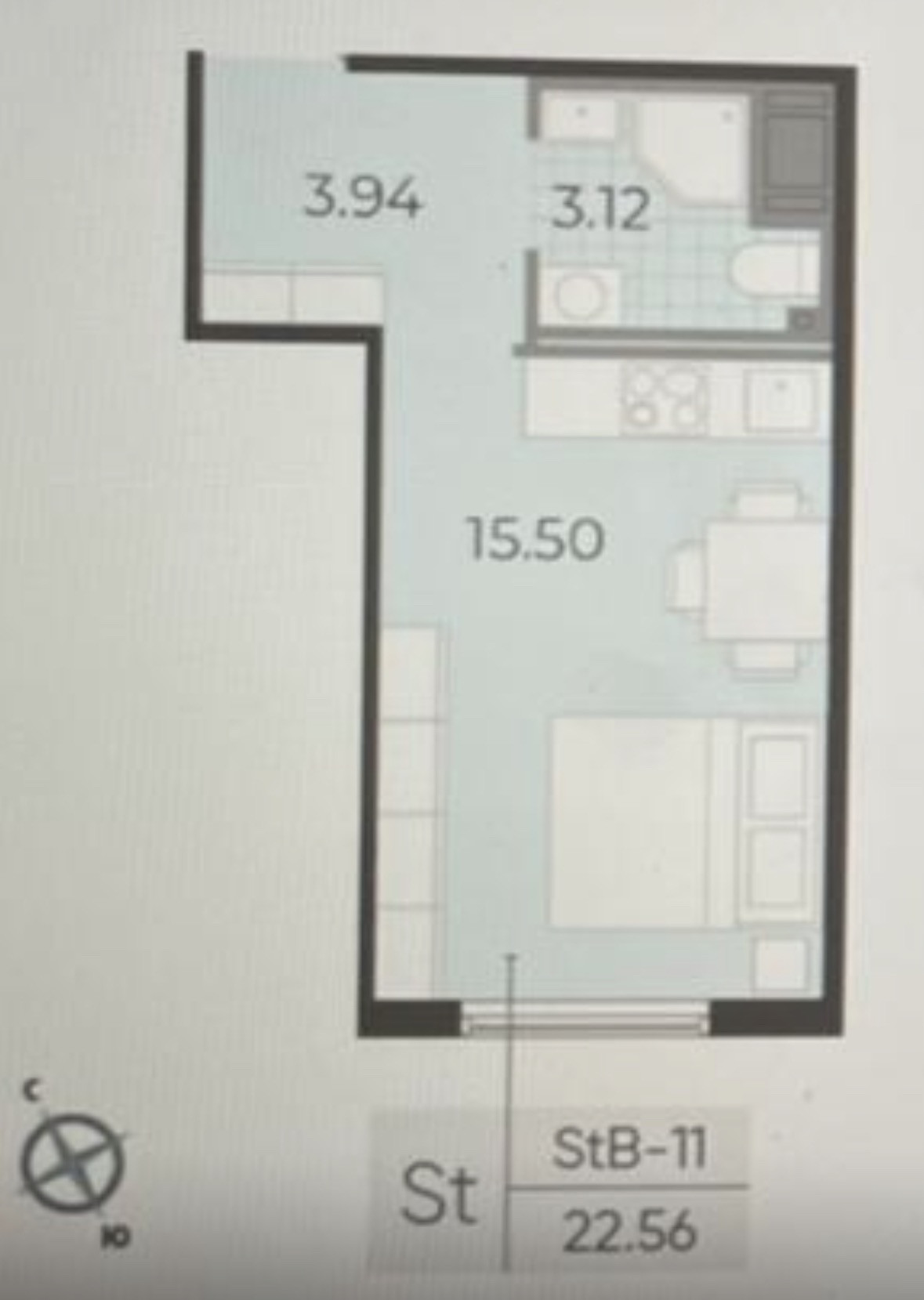 Общая площадь 22.6 м2