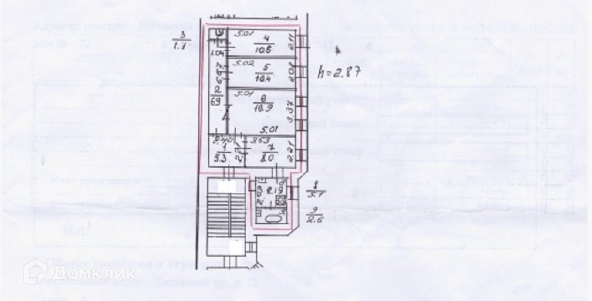 Высота потолков 2.87 м