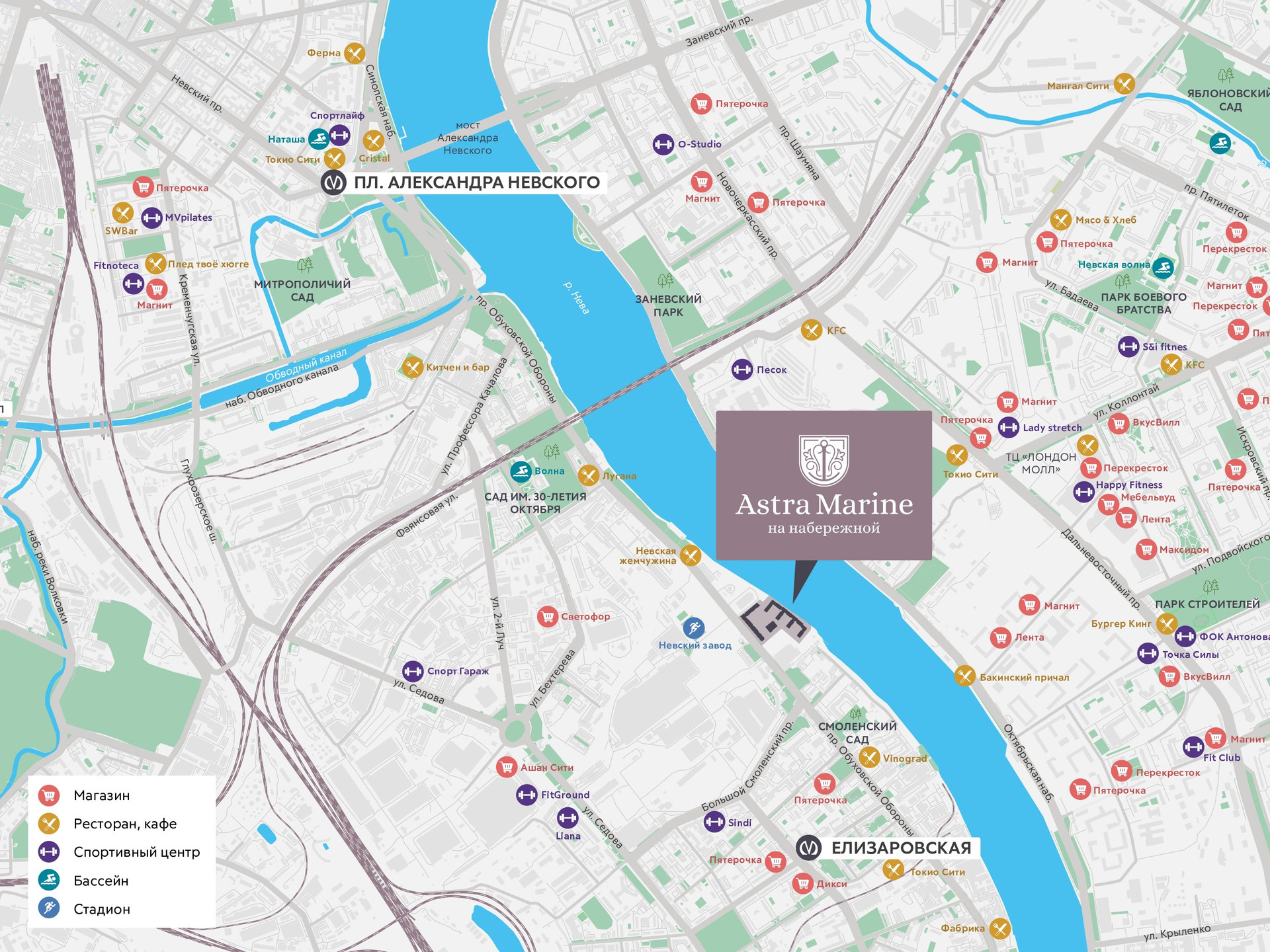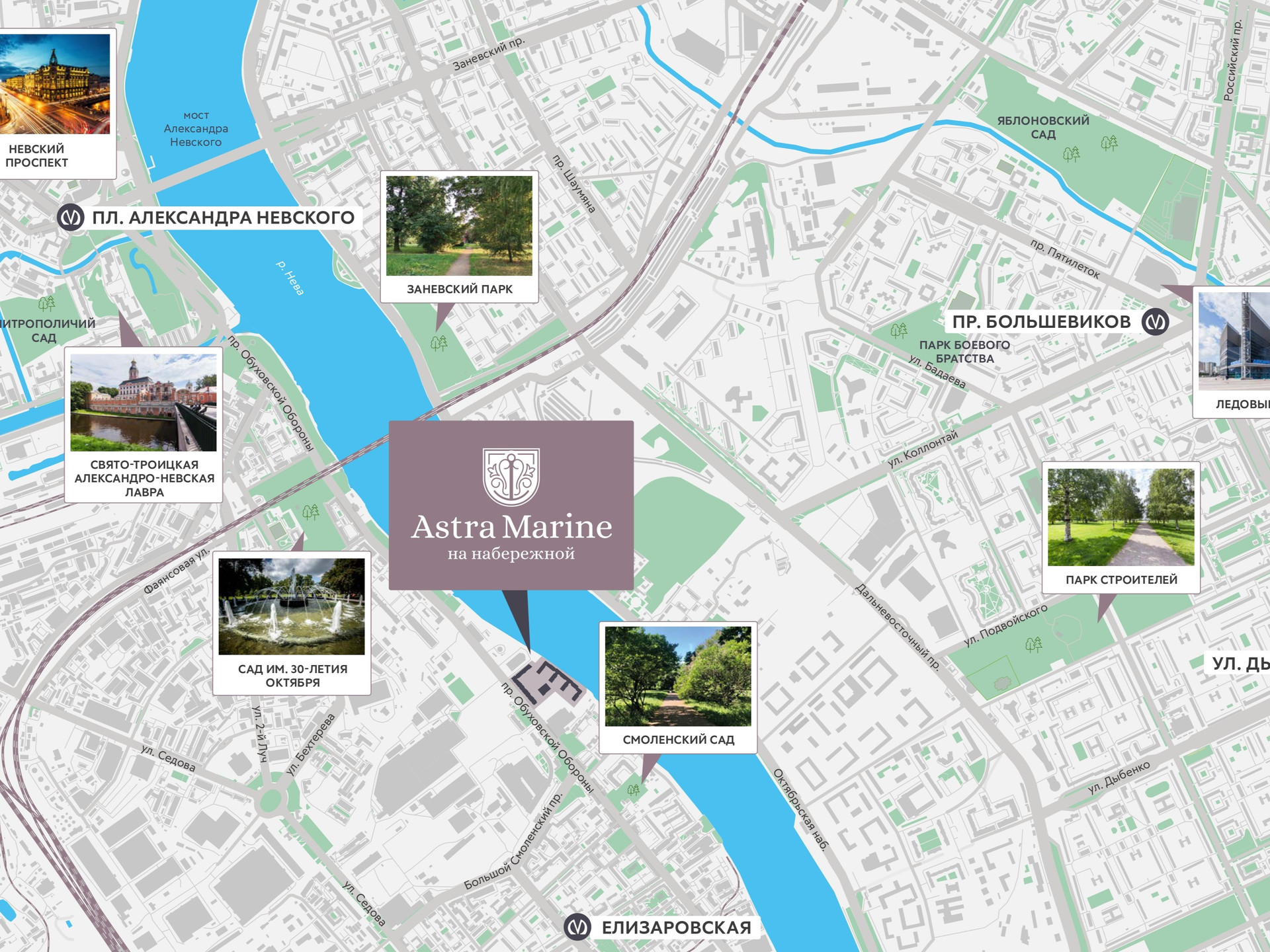 Astra Marine – это жилой комплекс высокого комфорт-класса, расположенный в Невском районе на набережной реки Невы.