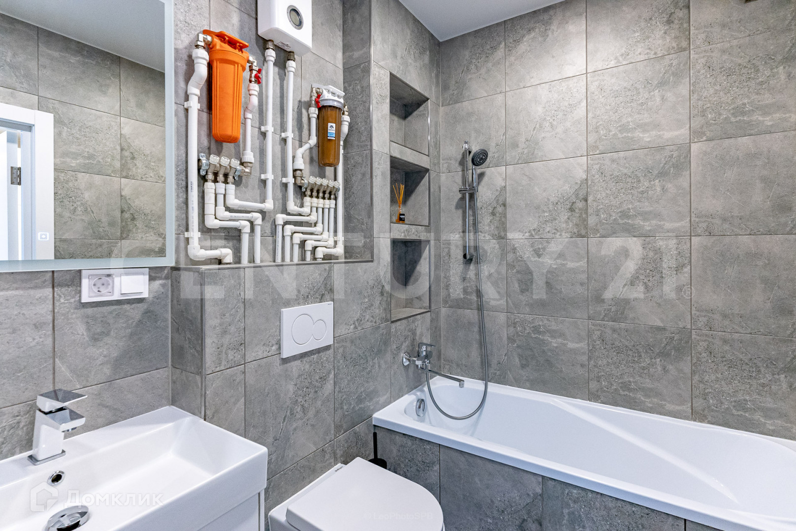 В ванной комнате установлен проточный водонагреватель, магистральные фильтры на воду.