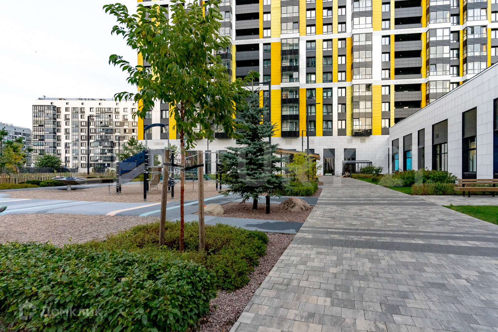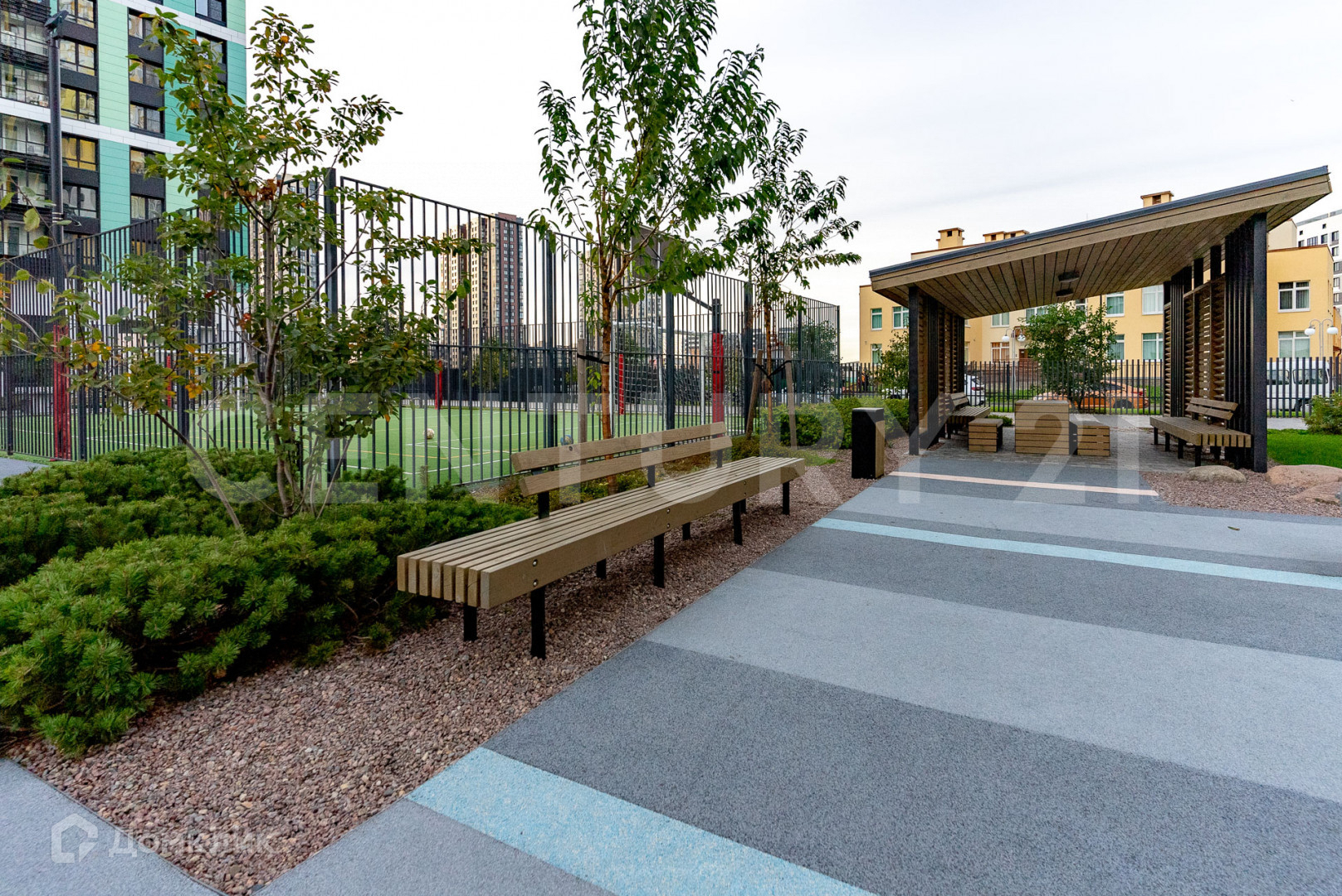 Три закрытых двора с премиальным ландшафтным озеленением, детскими площадками на разный возраст, теннисными столами, тренажерами и собственным футбольным полем.