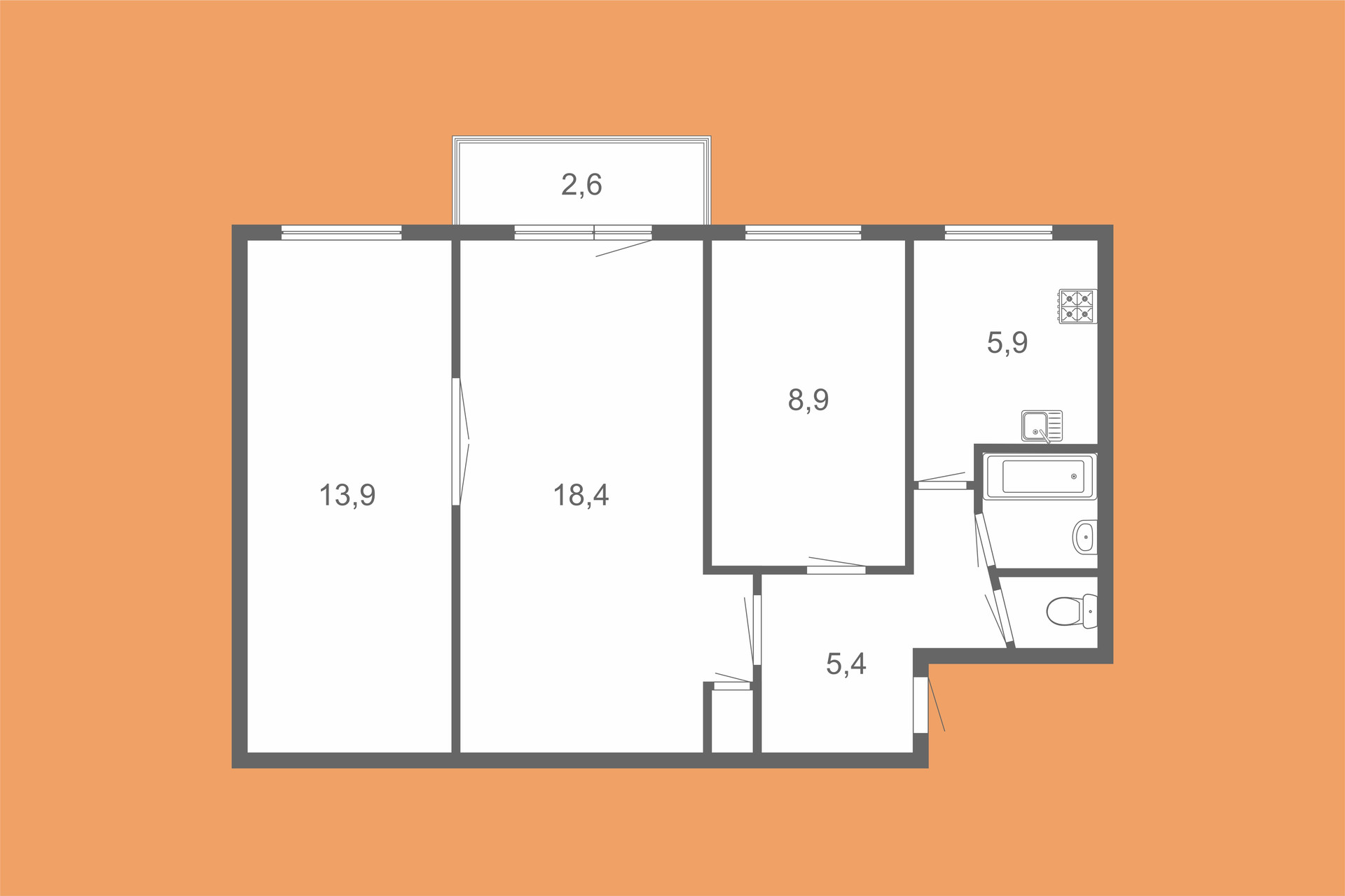 Общая площадь 55.7 м2
