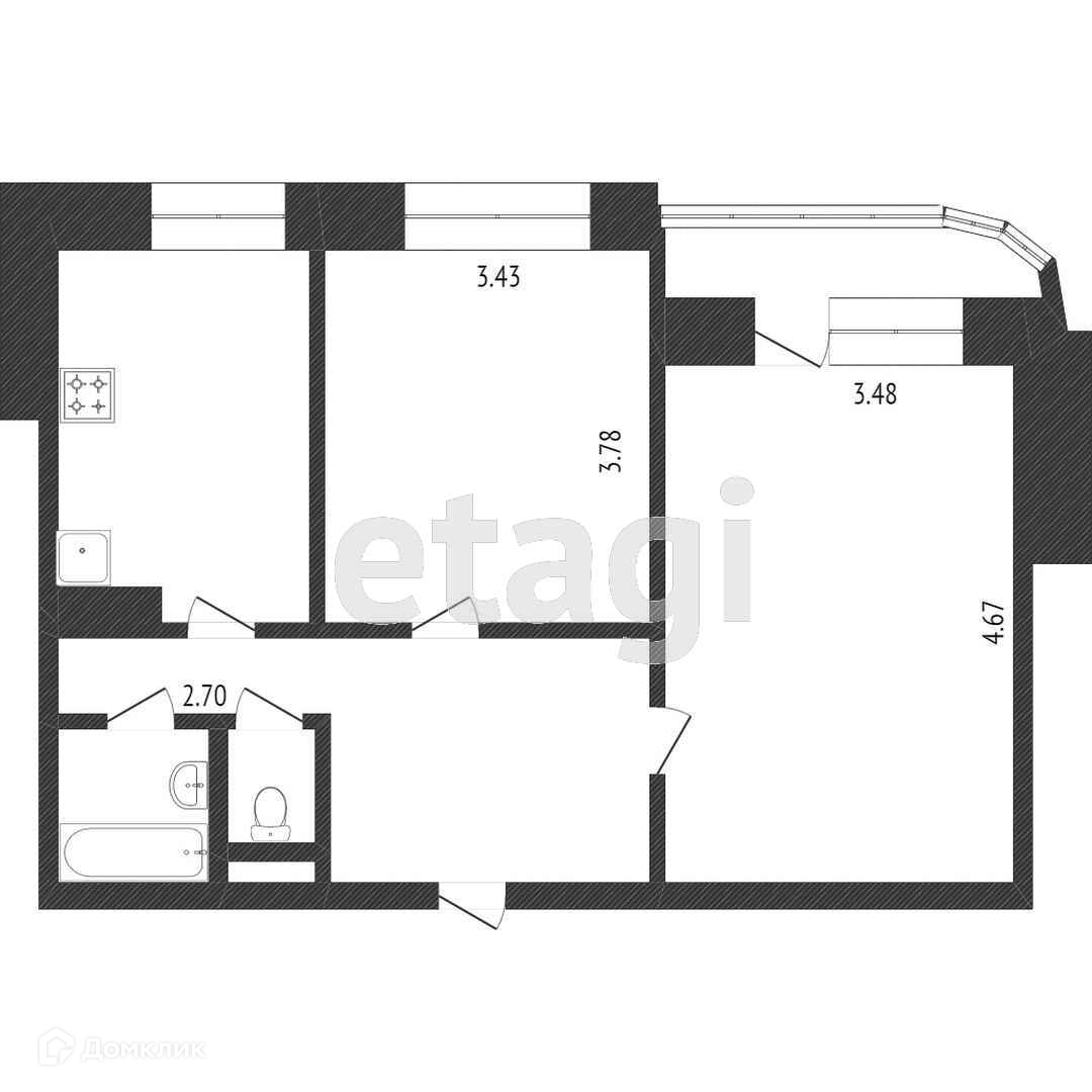 2-комнатная квартира, 51.3 м2, этаж 5 / 9, на продажу в Санкт-Петербурге, улица Кораблестроителей, 29к4