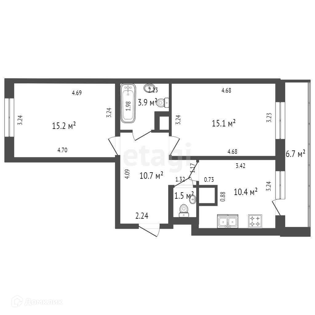 Общая площадь 56.8 м2