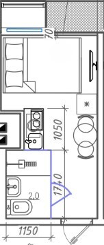 ✅ Общая площадь студии 9.6 кв. м.