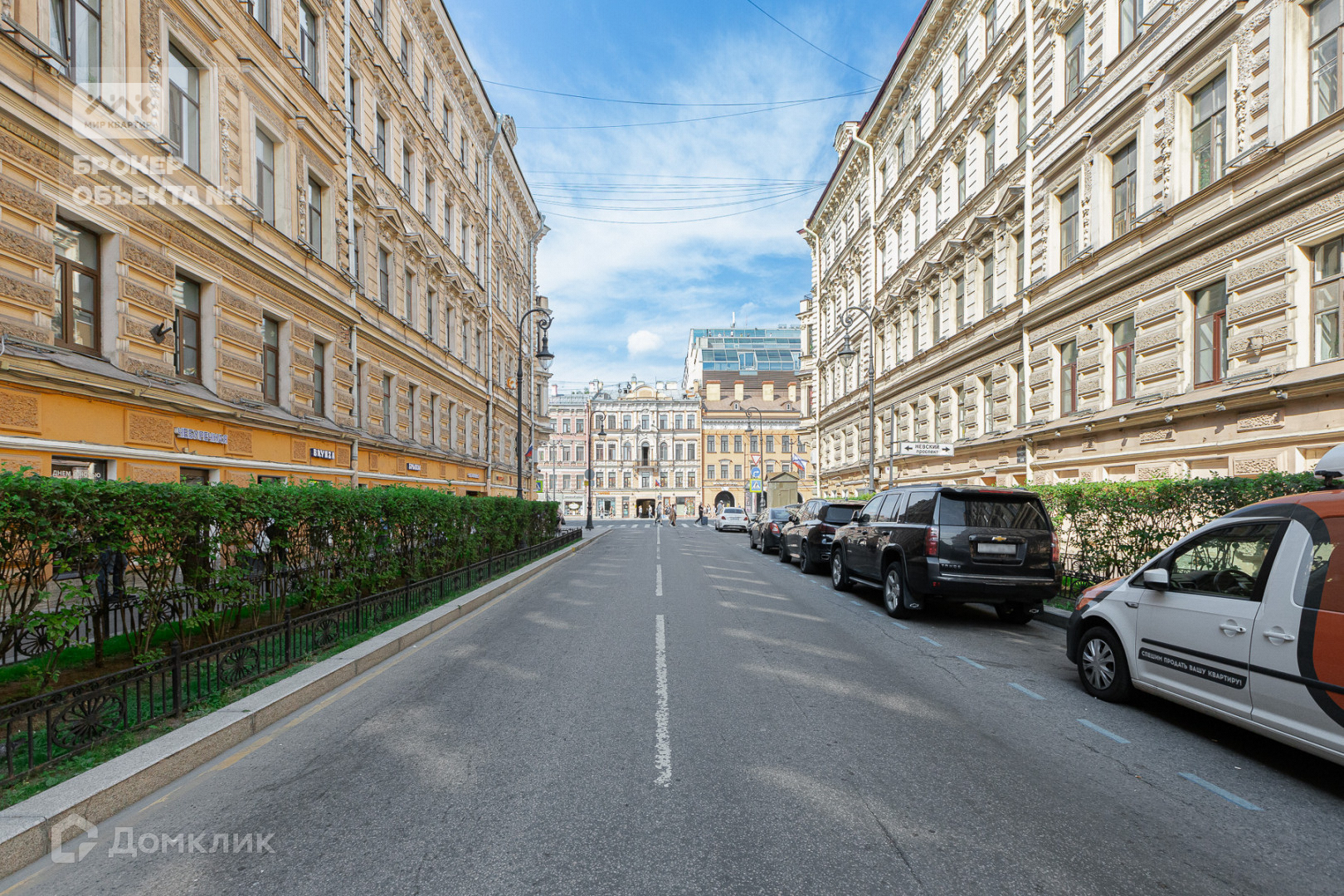 Парадный вход с Невского проспекта. Окна квартиры выходят в закрытый двор в котором есть возможность парковки автомобиля. Въезд по брелку.
