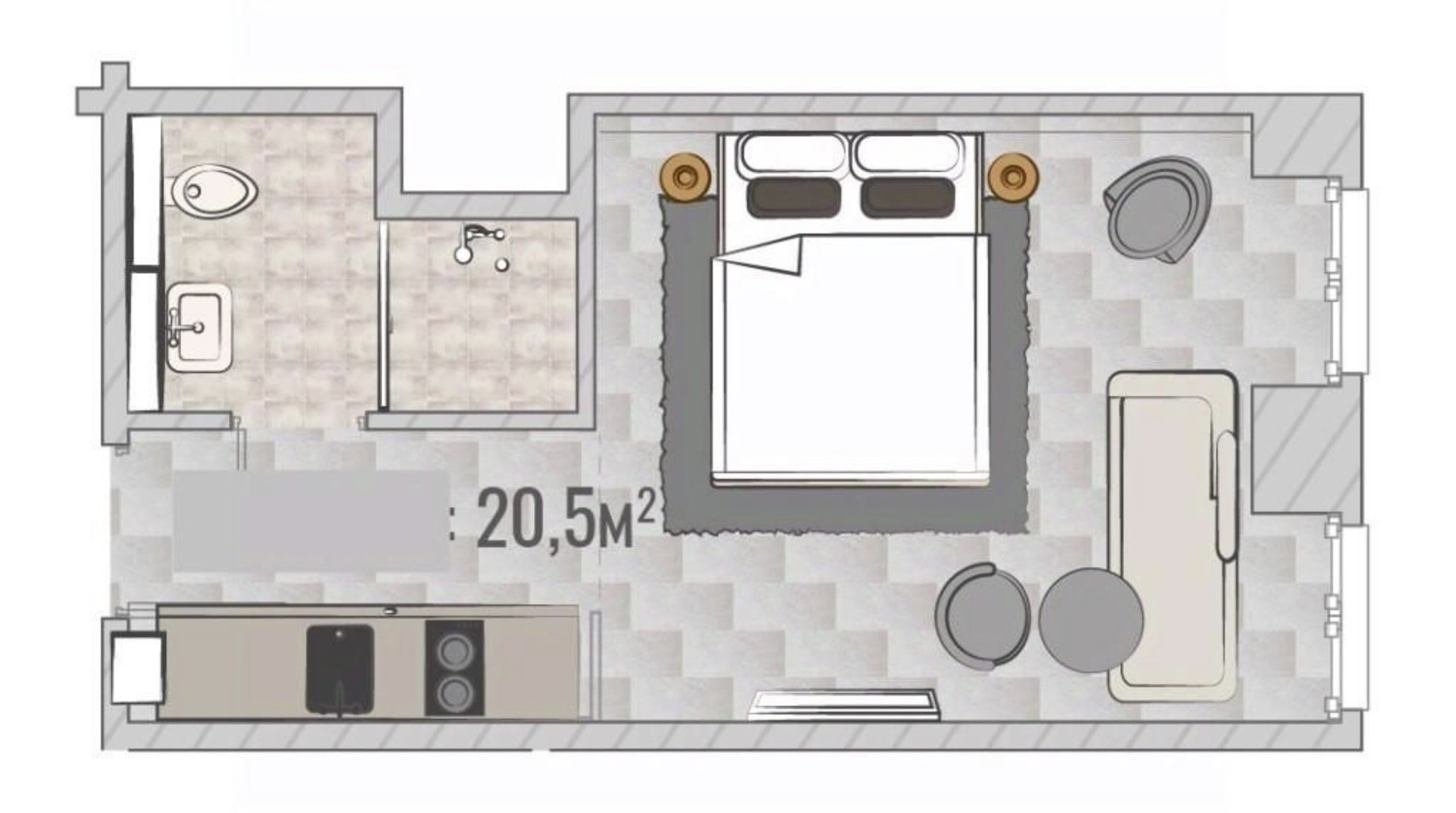 Общая площадь 20.5 м2