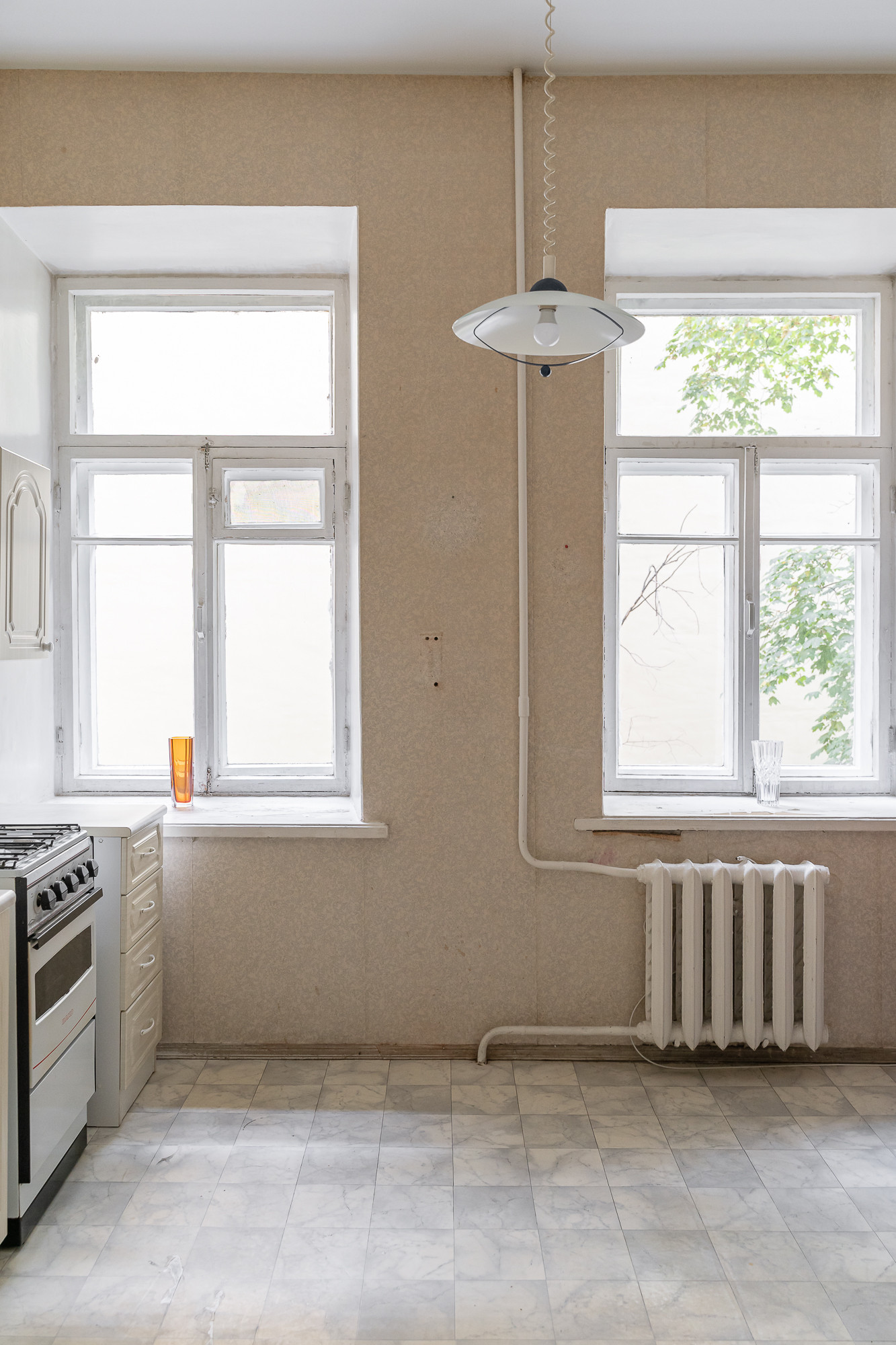 Центральное горячее водоснабжение, плита газовая. Высота потолка 3,32 метра. Стены кирпичные, толщина 3 кирпича. Межэтажные перекрытия из железобетонных плит. Окна выходят в небольшой тихий закрытый двор.
