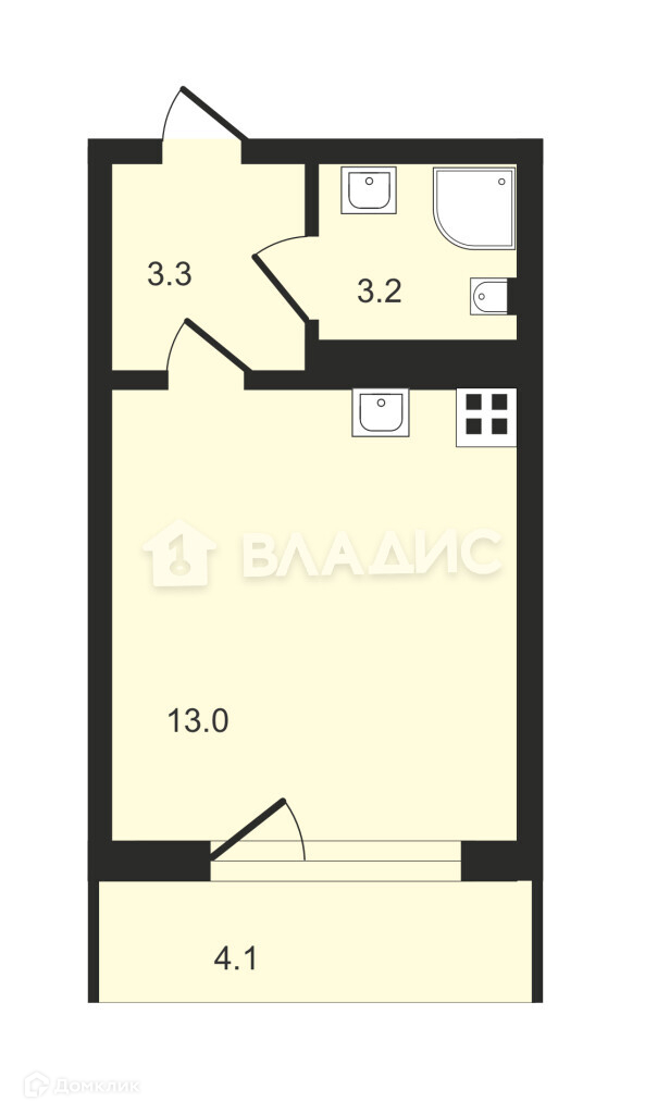 Общая площадь 20.8 м2