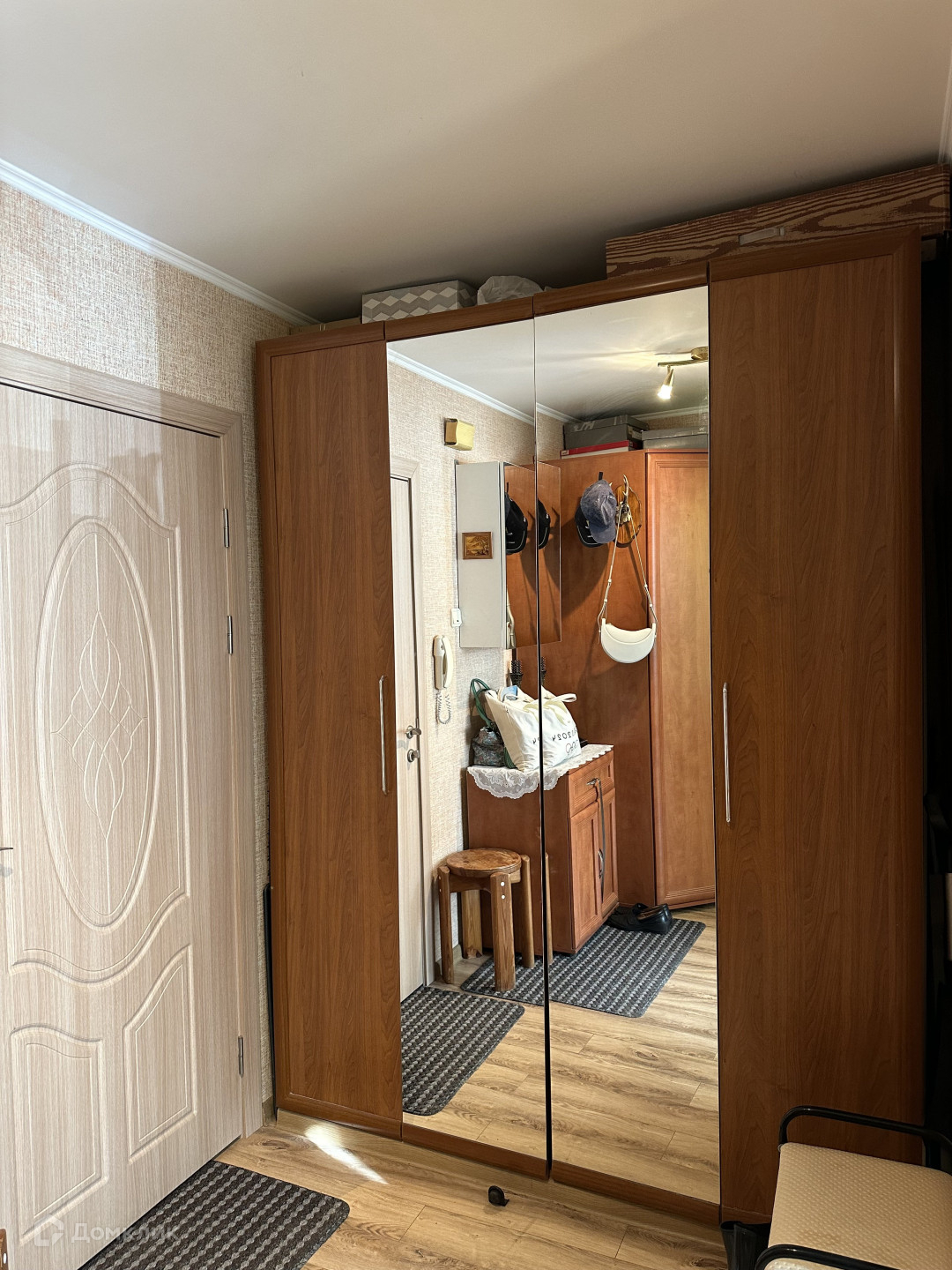 В квартире выполнен ремонт. В комнате площадью 21,6 кв.м. 2 окна. Площадь комнаты и ее конфигурация позволяют перепланировку на 2 отдельные комнаты. В коридоре размещены 2 шкафа для одежды. Совмещенный санузел 4,5 кв.м. На кухне электрическая плита.