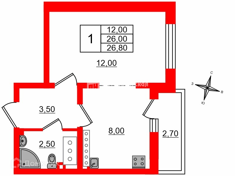Площадь: 26 м2 — продуманная планировка для комфортной жизни