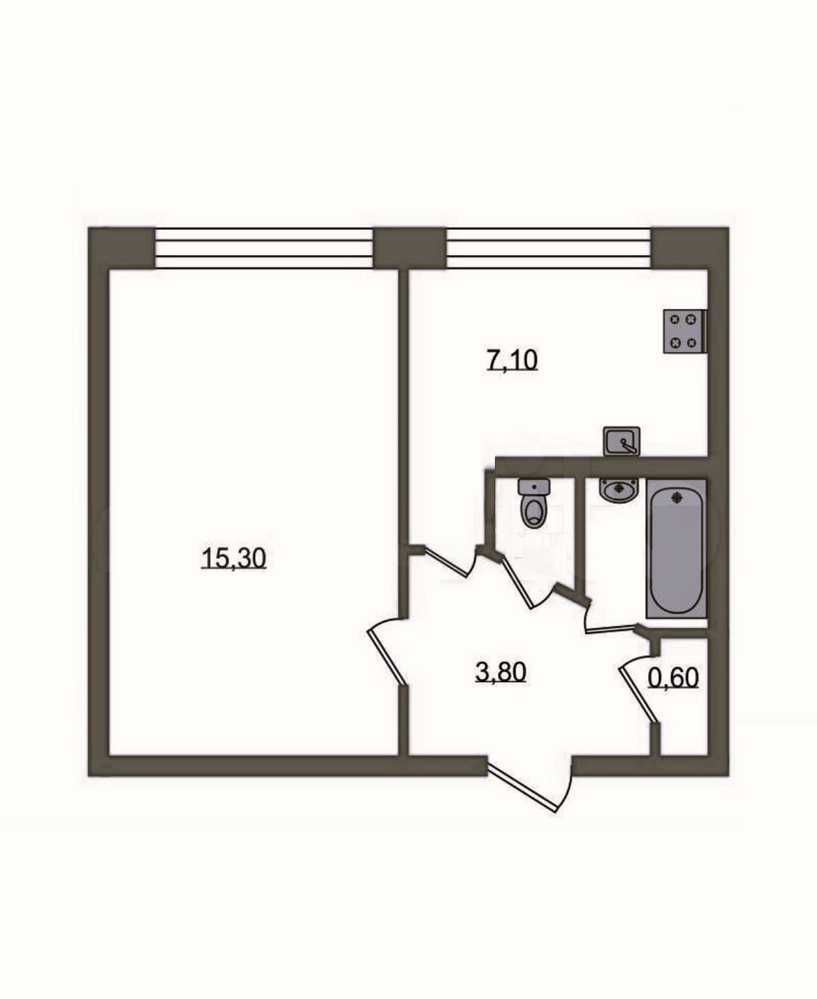 Жилая площадь 15.3 м2