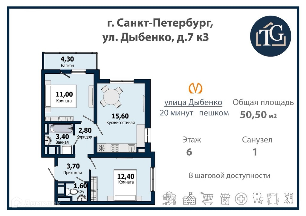 ТРК — Лондон Молл в 10 минутах на автомобиле, Ледовый дворец спорта и хоккейный город СКА — в 15 минутах.