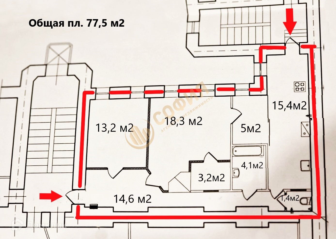 Общая площадь 77.5 м2