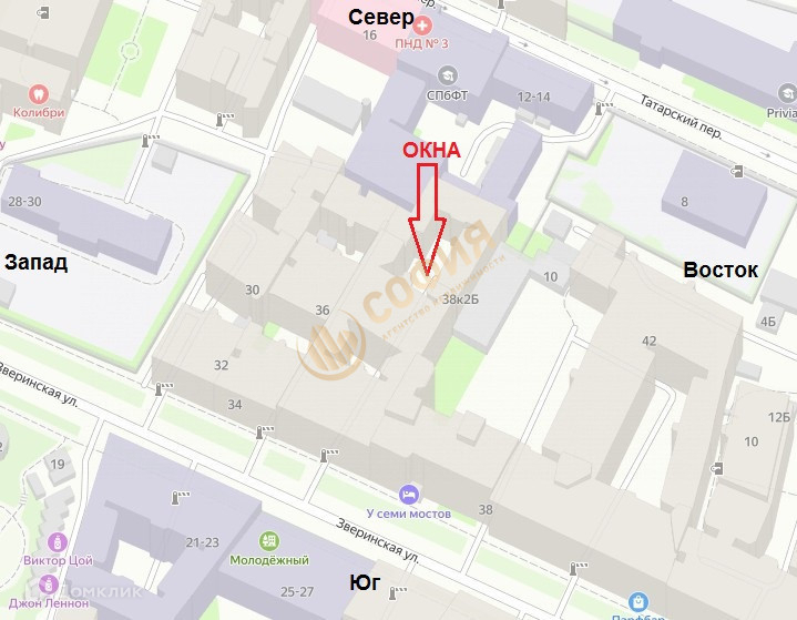 Арт. 75132588 В прямой продаже двухкомнатная квартира в историческом центре Санкт-Петербурга, в Петроградском районе.