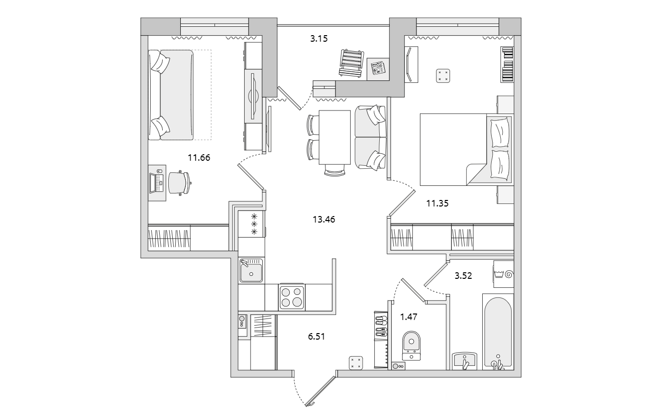 Площадь кухни 13.5 м2