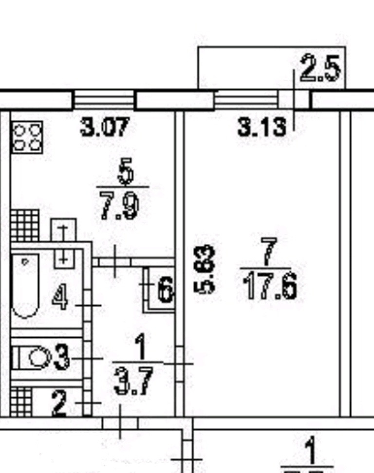 Балкон, лоджия 1 балкон