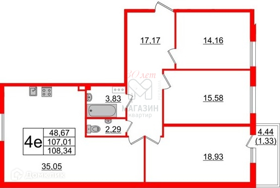 Общая площадь 107.5 м2