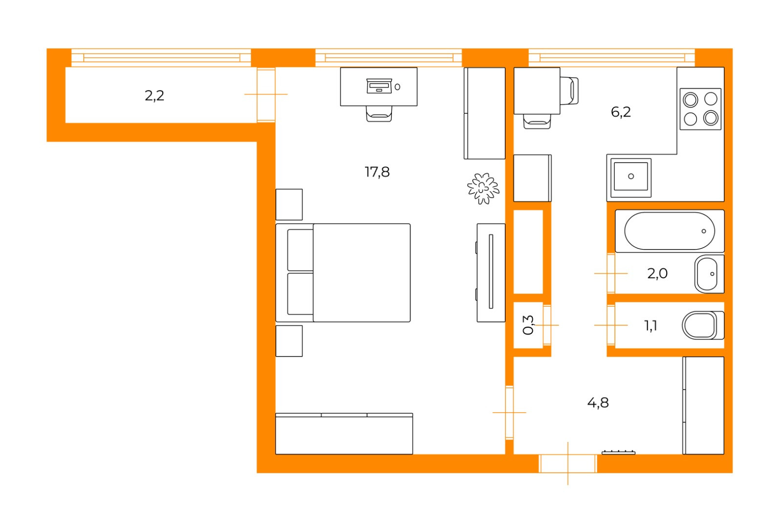 Общая площадь 32.5 м2