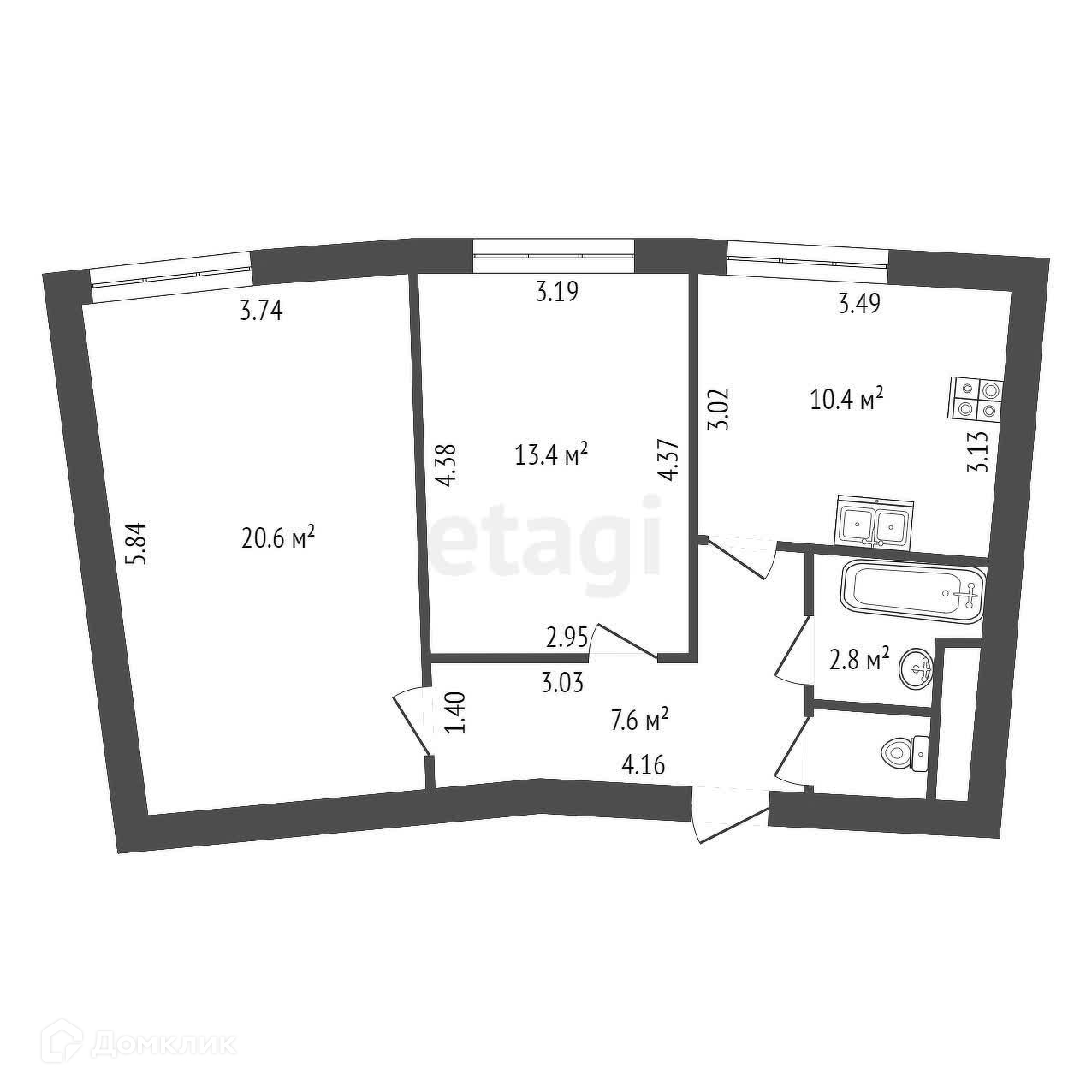 Общая площадь 56 м2