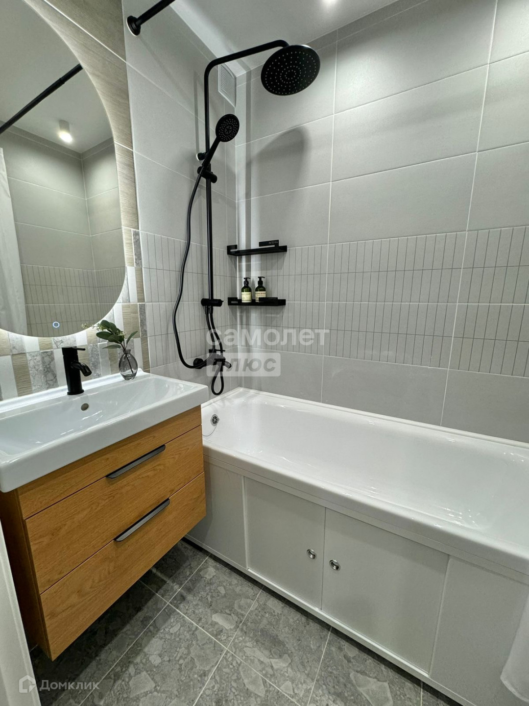 В санузлах керамогранит.