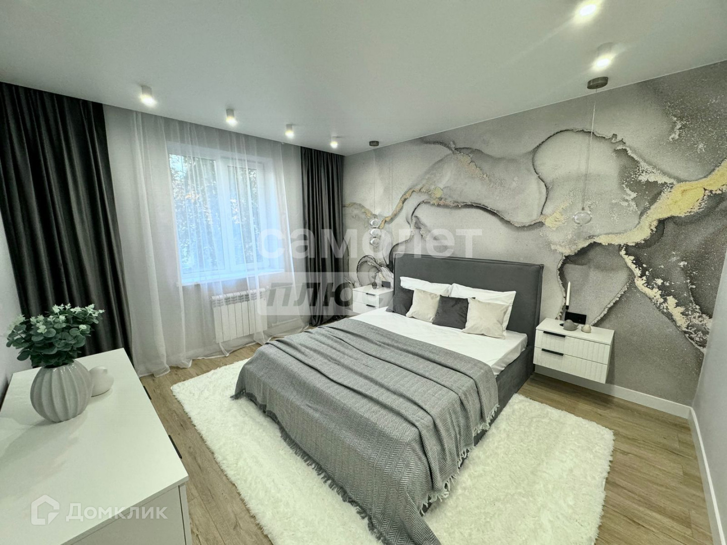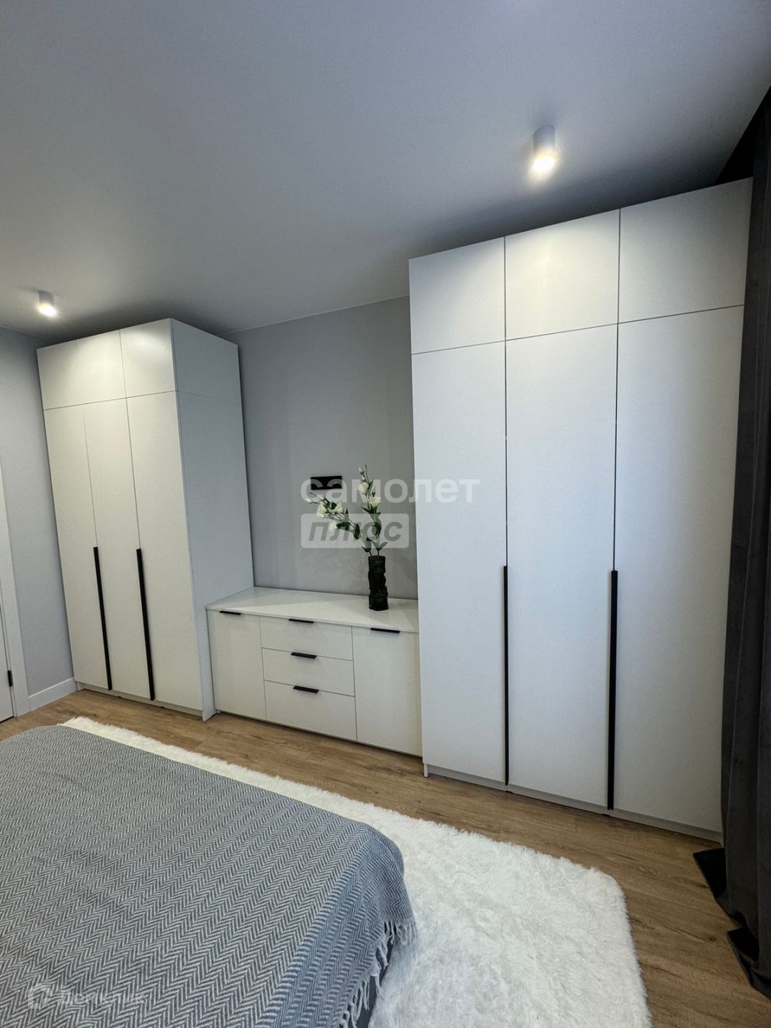 Просторная спальня, кровать с подъемным механизмом, что обеспечивает дополнительное хранение. Также в спальне предусмотрены два больших гардеробных шкафа.